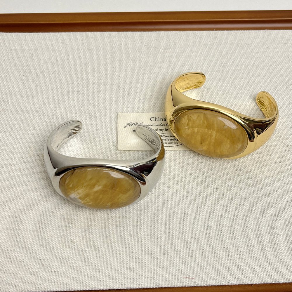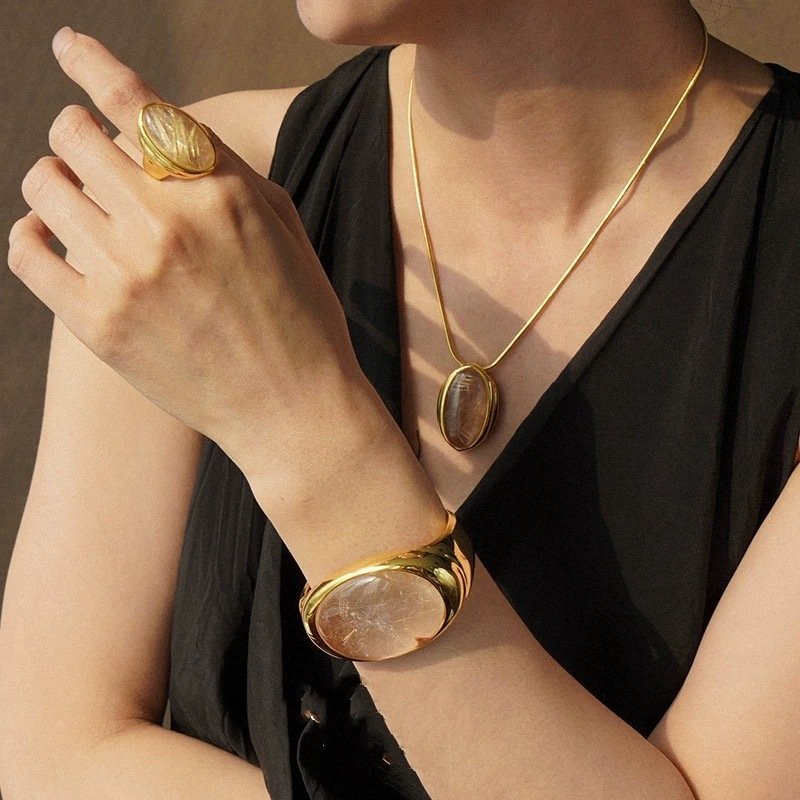 Alloy Real Citrine Crystal Natural Stone Inlaid Pendant Necklace Adjustable Chain Big Open Size Bangle Bracelet, Open Size Ring Stud Earrings