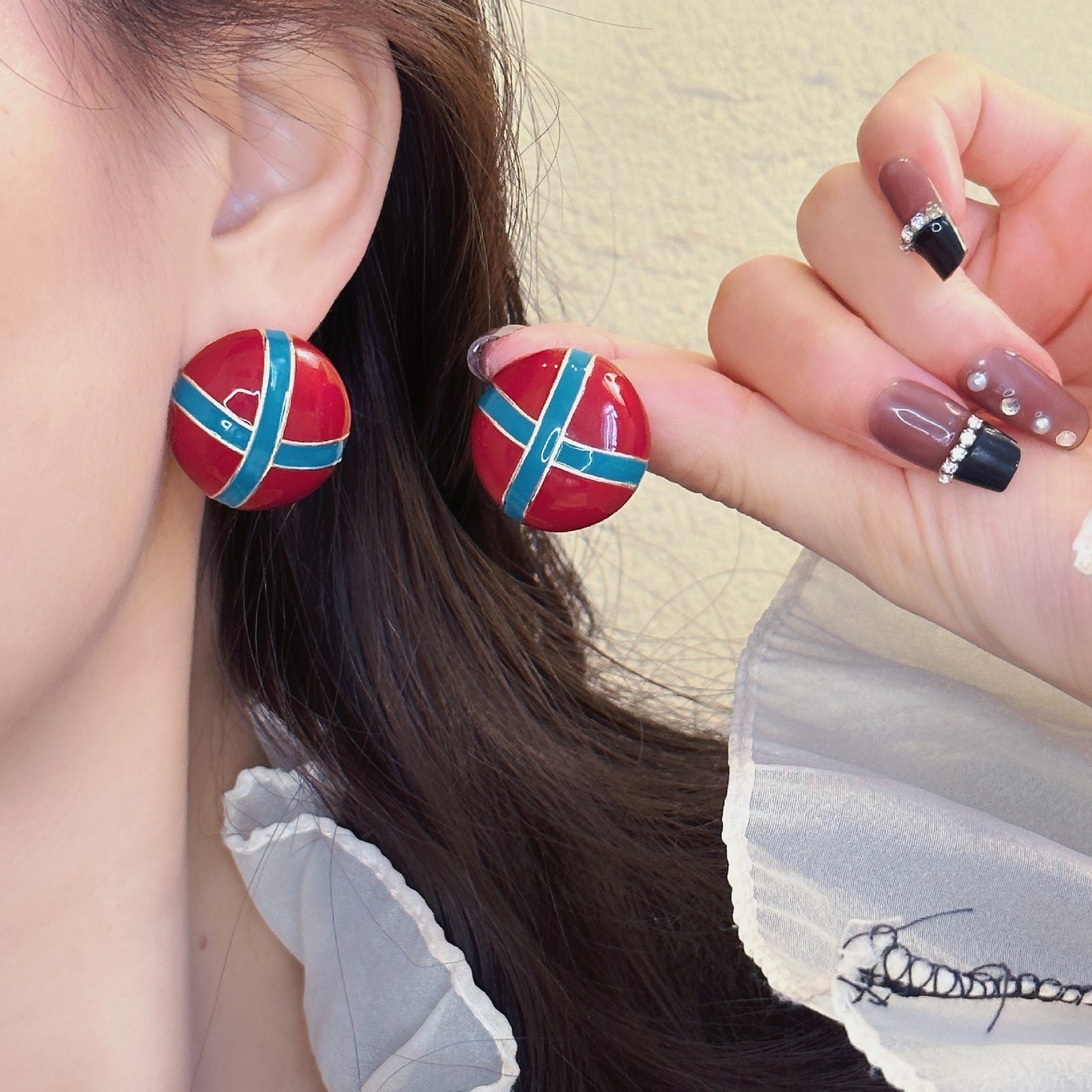 925 Silver Post Part Striped Glaze Dripping Circle Earrings quantity