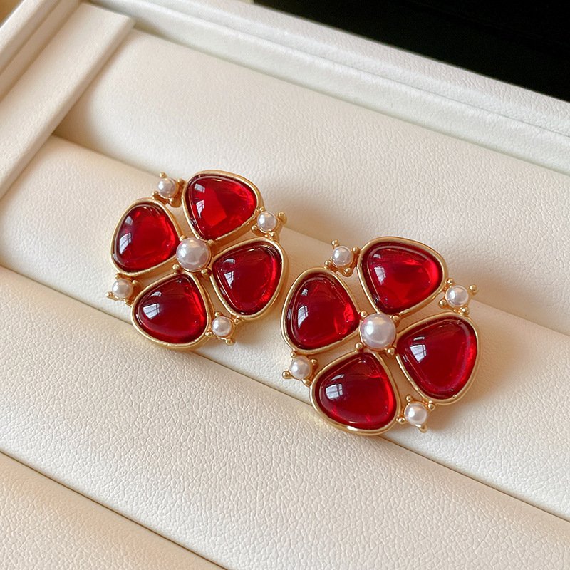 925 Sterling Silver Post Red flower Earrings quantity