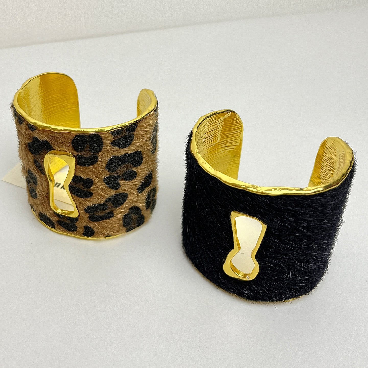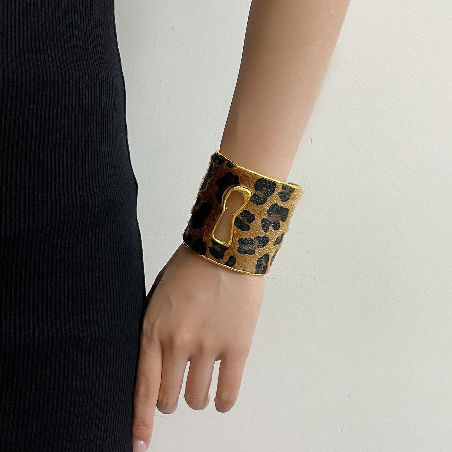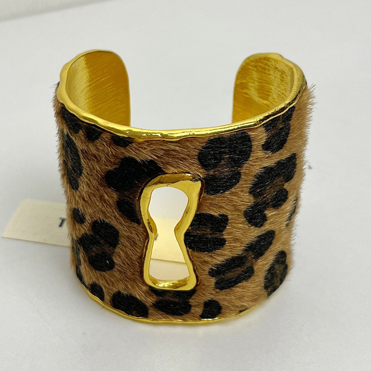 Alloy Key Whole Black / Leopard Pattern Open Size Wide Big Bangle Wide Bracelet for Wrist Arm