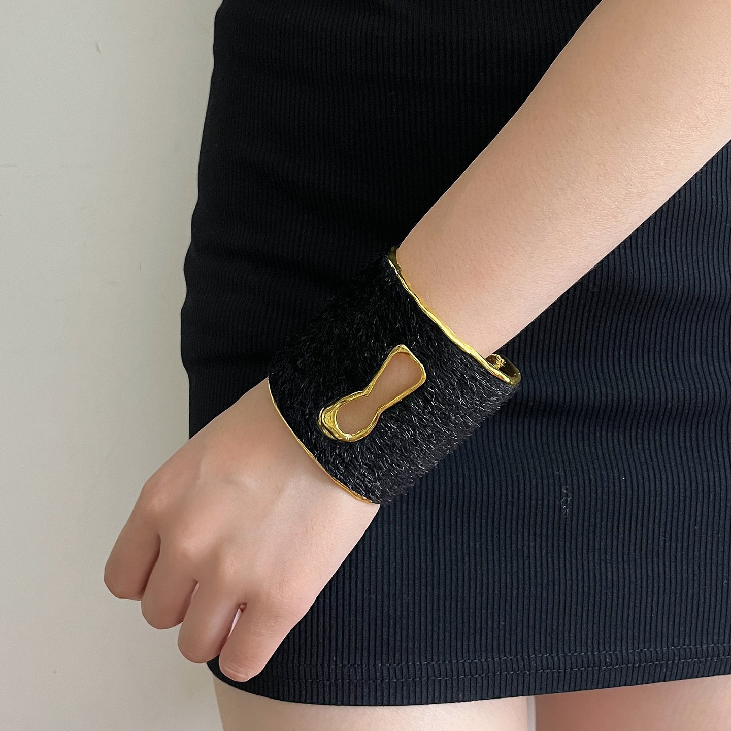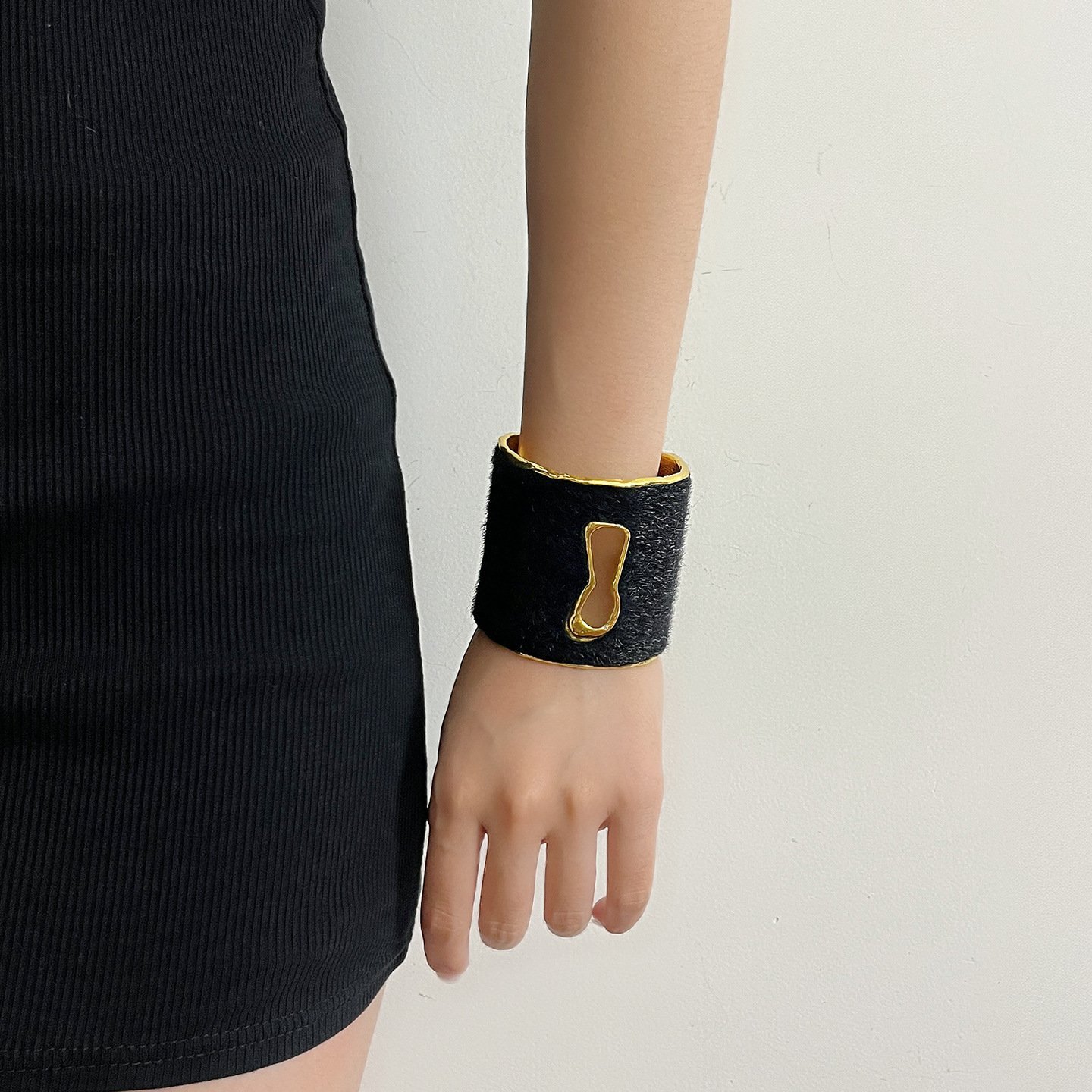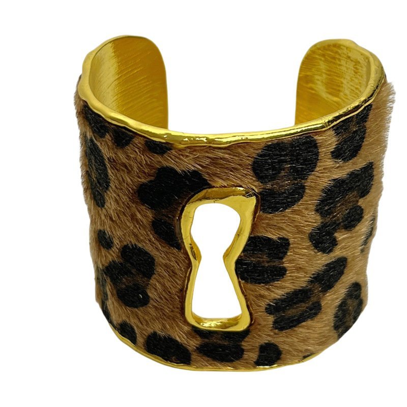 Alloy Key Whole Black / Leopard Pattern Open Size Wide Big Bangle Wide Bracelet for Wrist Arm