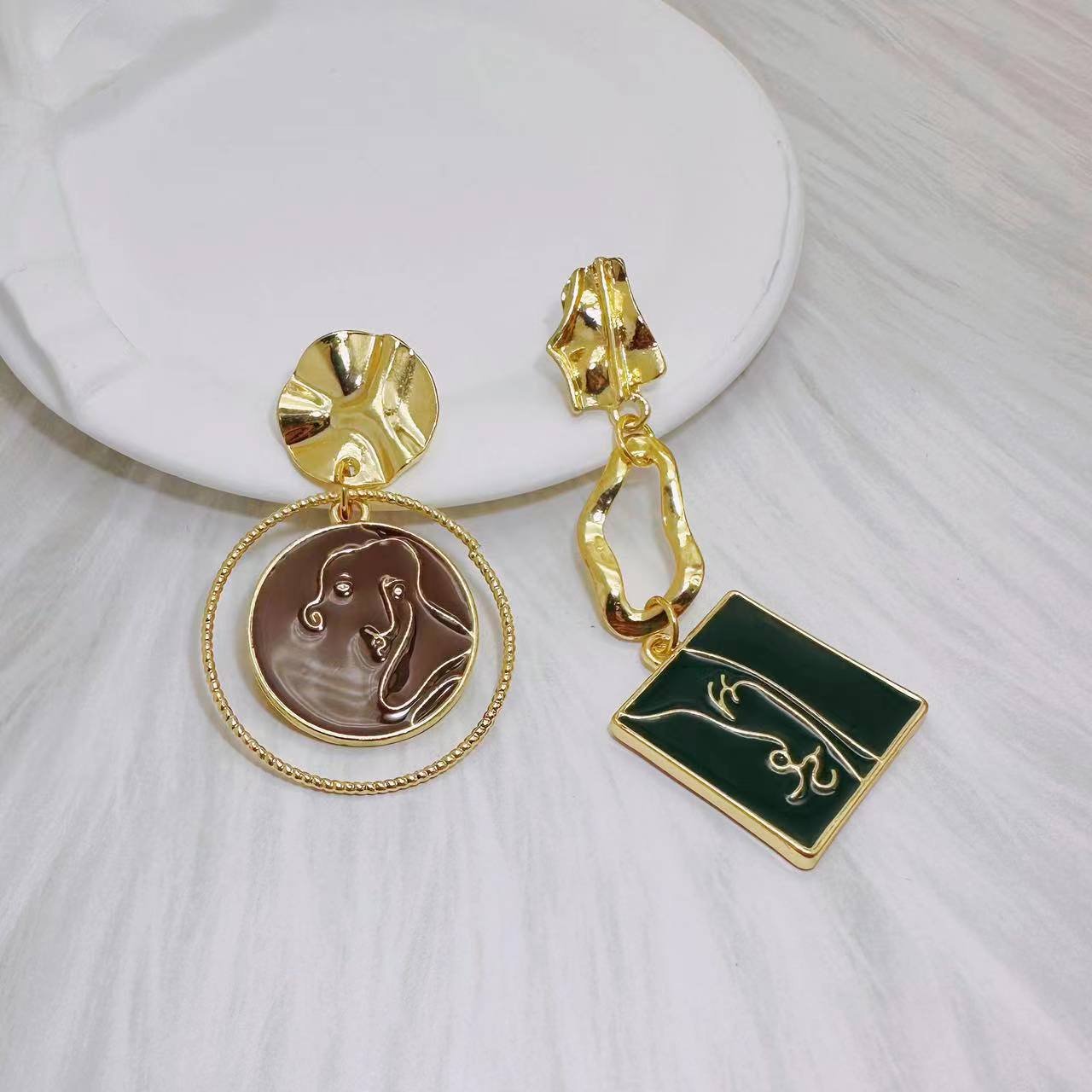 Asymmetrical Earrings With Lines And Human Faces quantity