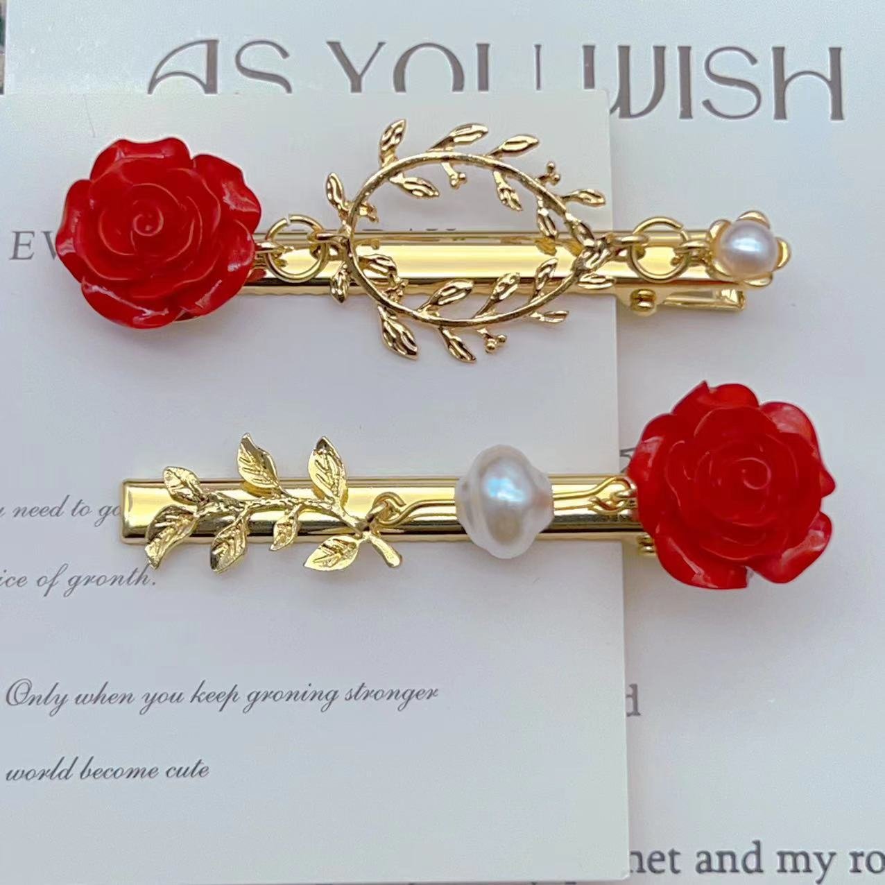 Asymmetrical Hairpin Rose Imitation Pearl Elegant Vintage Frog Clip Side Clip quantity