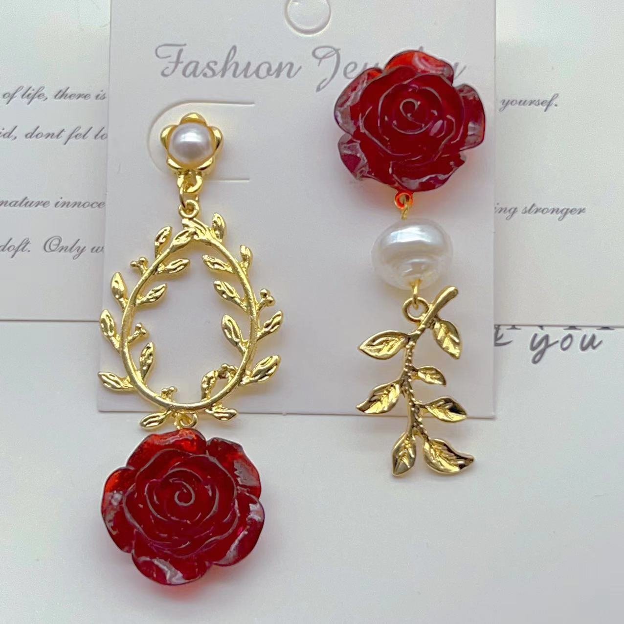 Asymmetrical Vintage Rose Imitation Pearl Elegant Vintage Earrings
