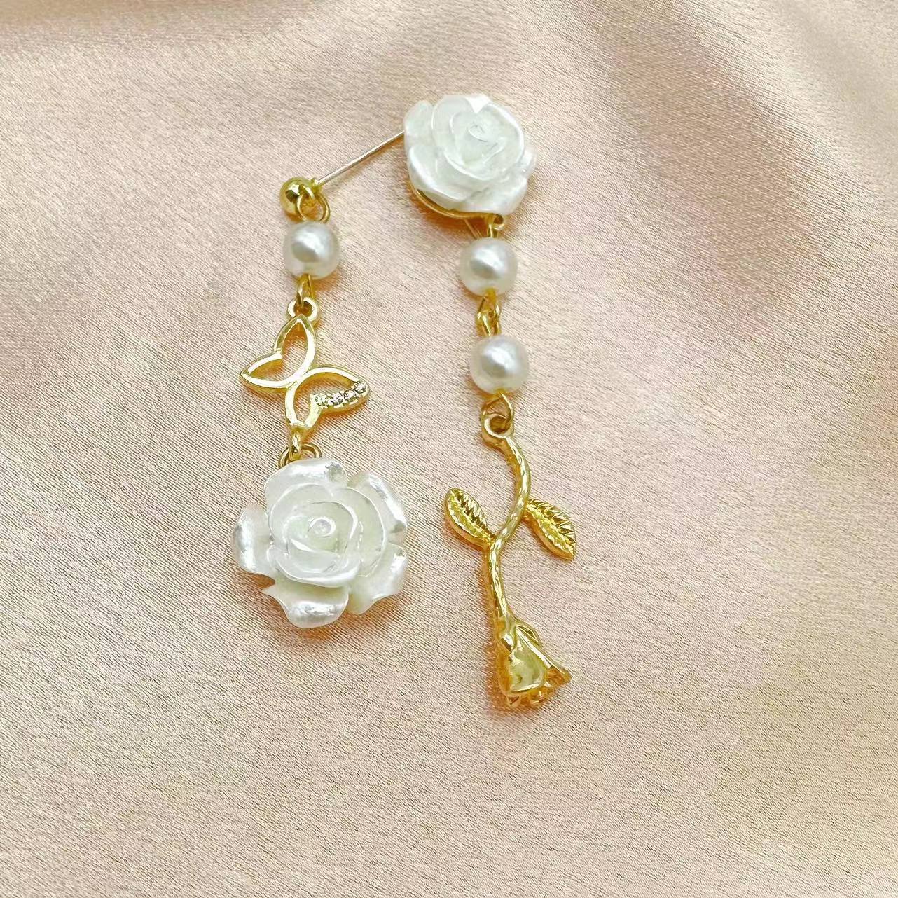 Asymmetrical White Rose-Shaped Elegant Small Earrings