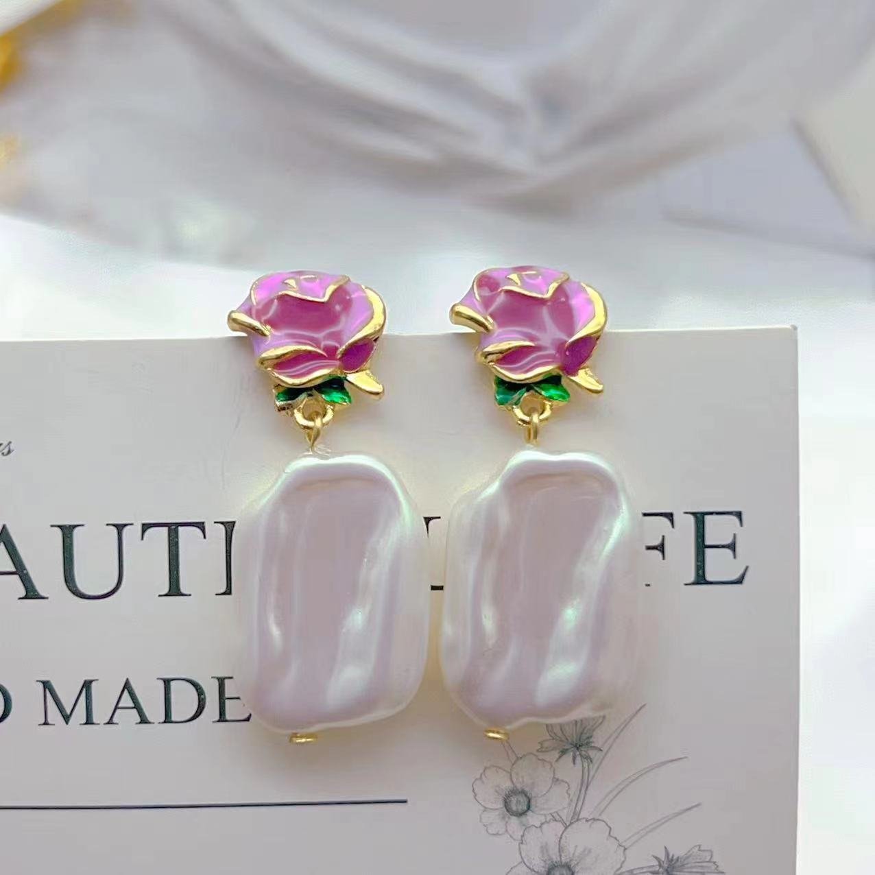 Baroque Imitation Pearl Irregular Earrings Flower