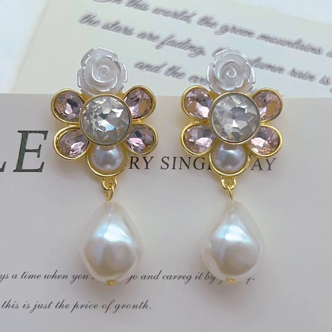 Baroque Large Water Drop Rhinestone Flower Earrings