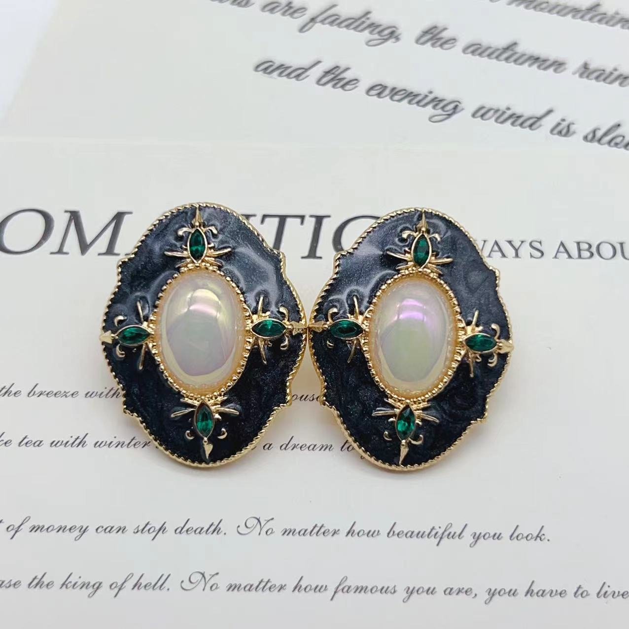 Black Glaze Drop Baroque Earrings Vintage quantity