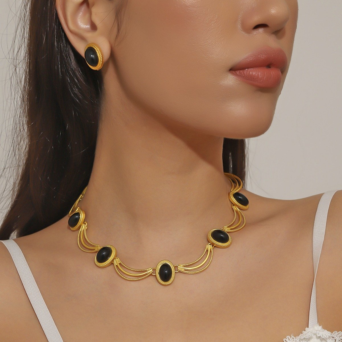 Black Oval Necklace + Earrings Jewelry Sets quantity