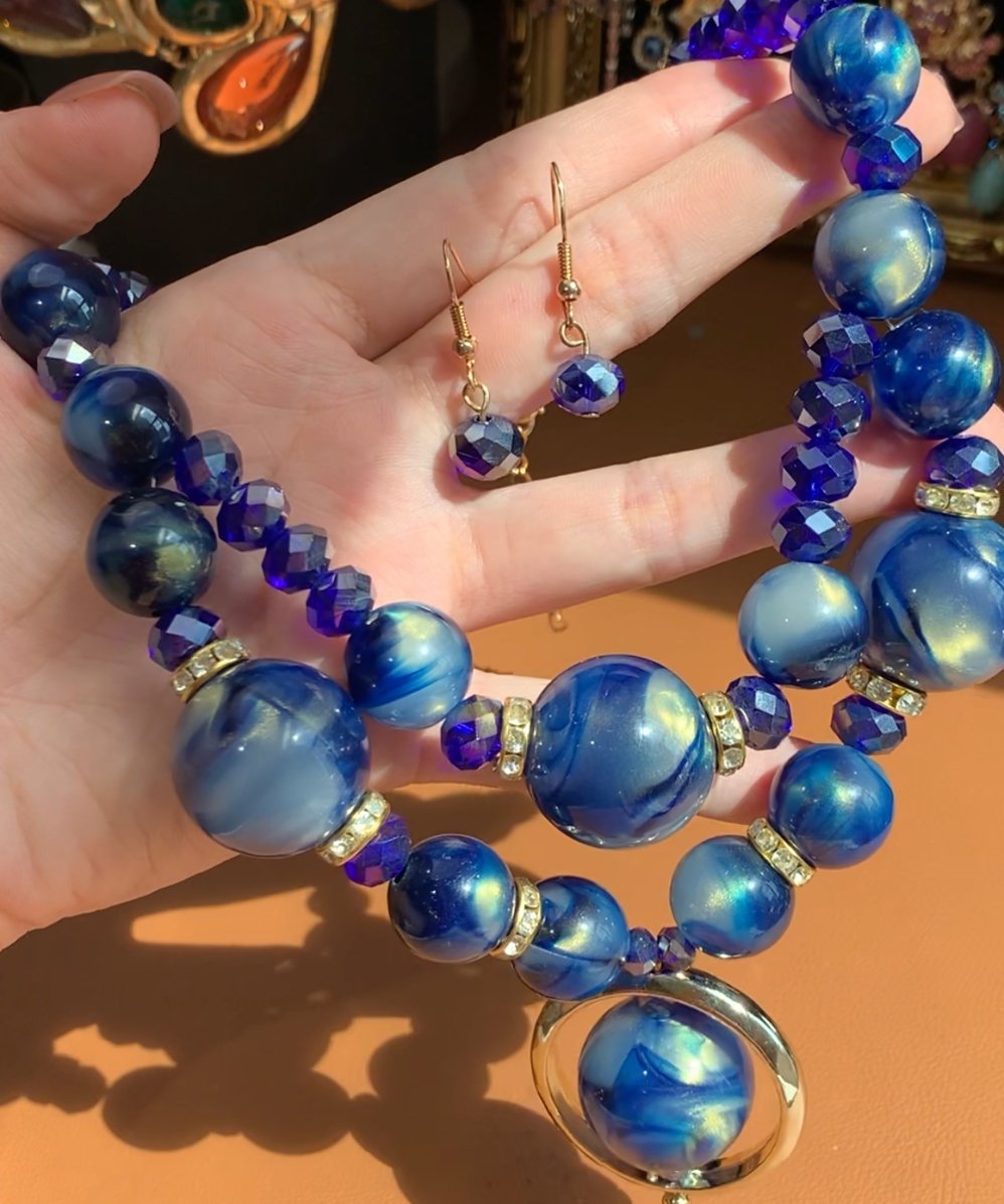 Be the first to review “Blue Earth Cokor Round Resin Ball Beaded Necklace Earrings Set”