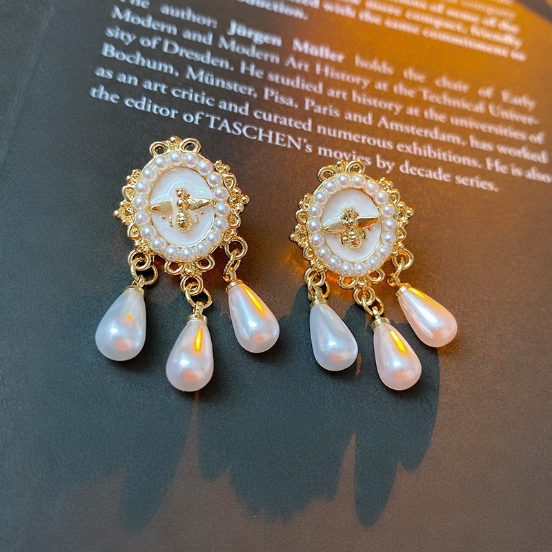Golden bee pearls 925 Sterling Silver Post Part Earrings