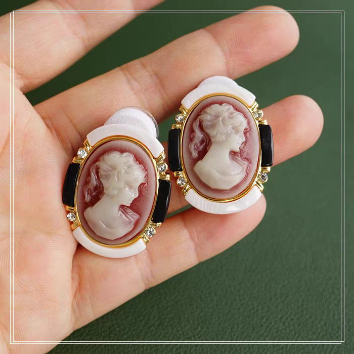 Be the first to review “Cameo Style Lady Relief Vintage Style Pink Stud Earrings”
