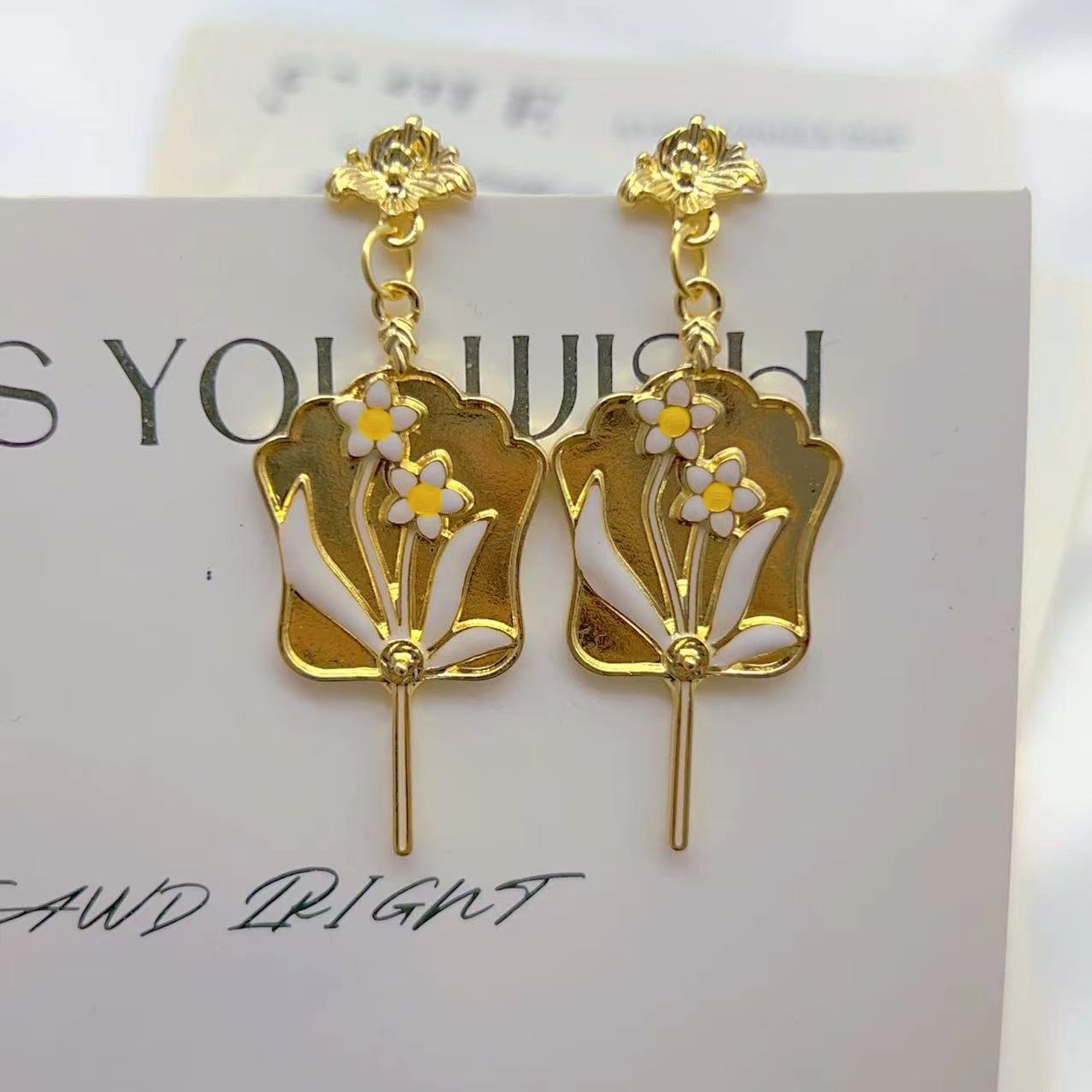 Cheongsam Enamel Glaze Flower Fan Earrings