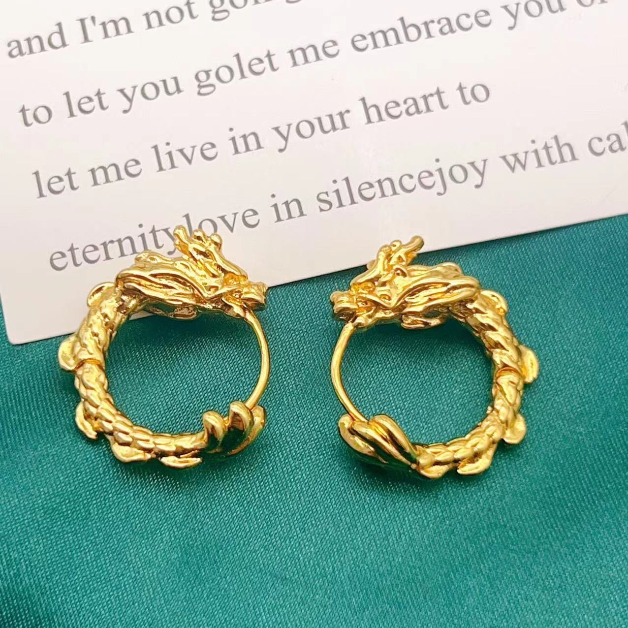 Circle Dragon Earrings Copper Plated With Gold quantity