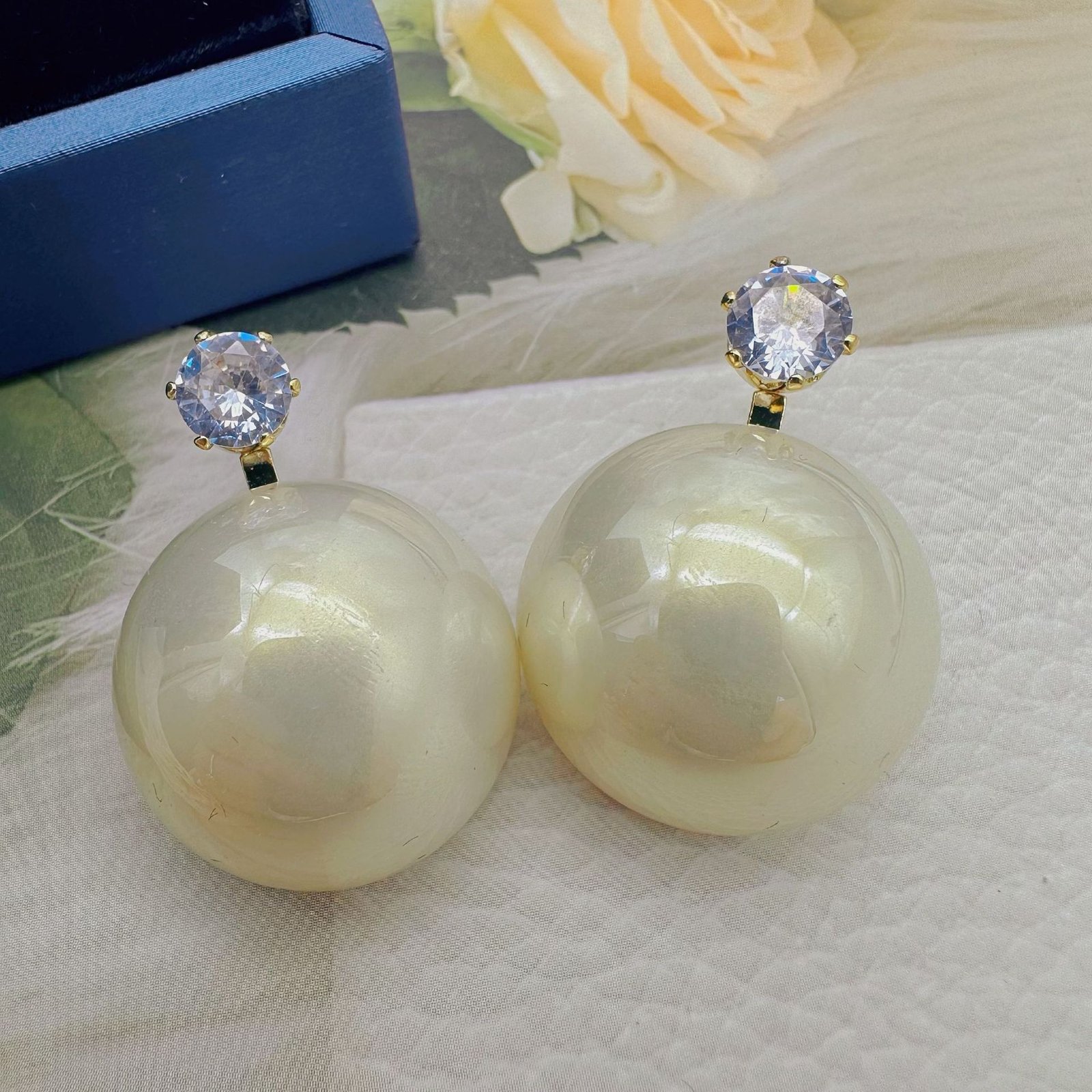 Claw-Set Gemstone Large Dot Semi-Circular Imitation Pearl Earrings quantity