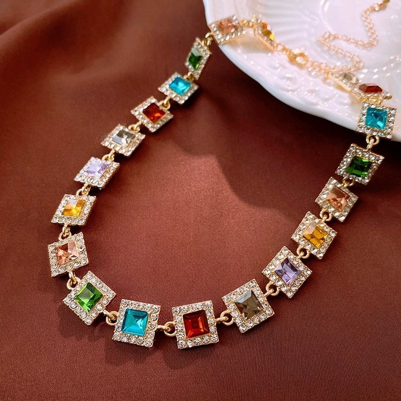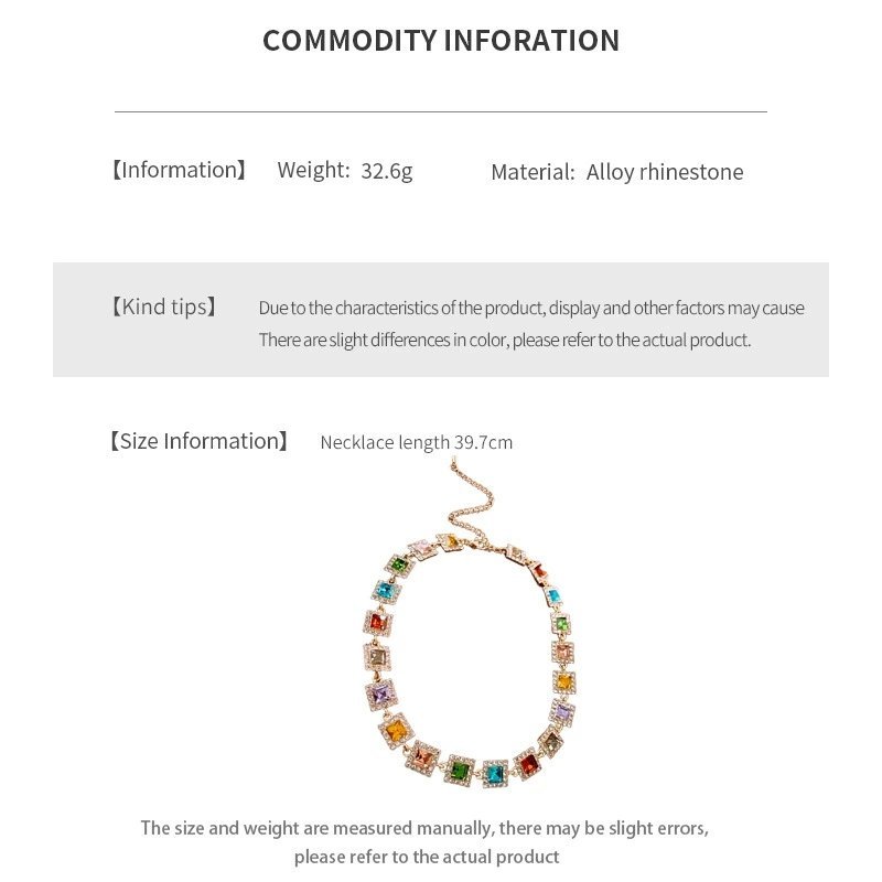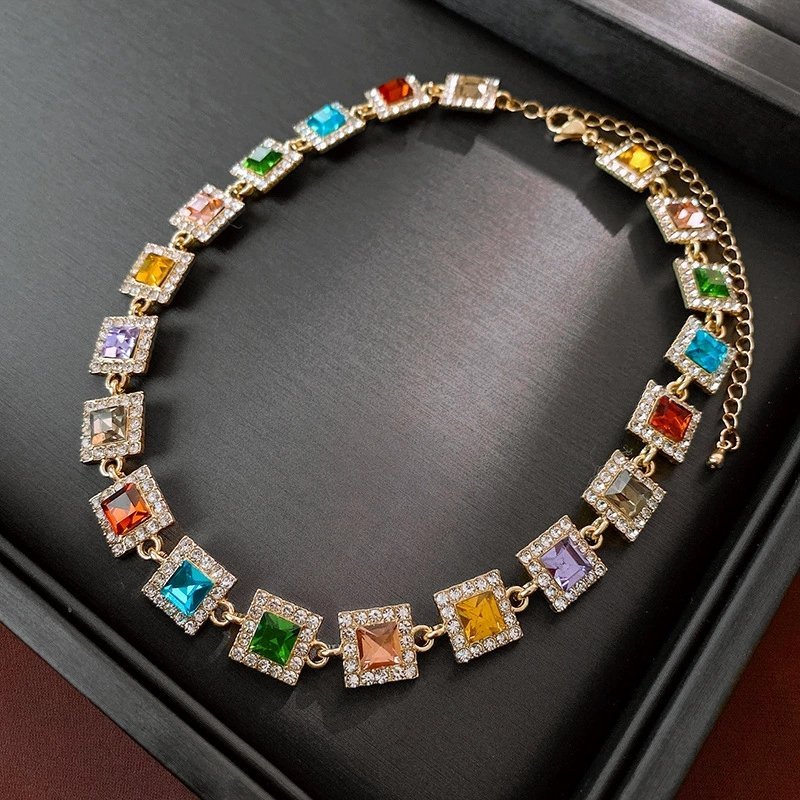 Colorful Rhinestone Inlaid Square Shape Choker Short Necklace