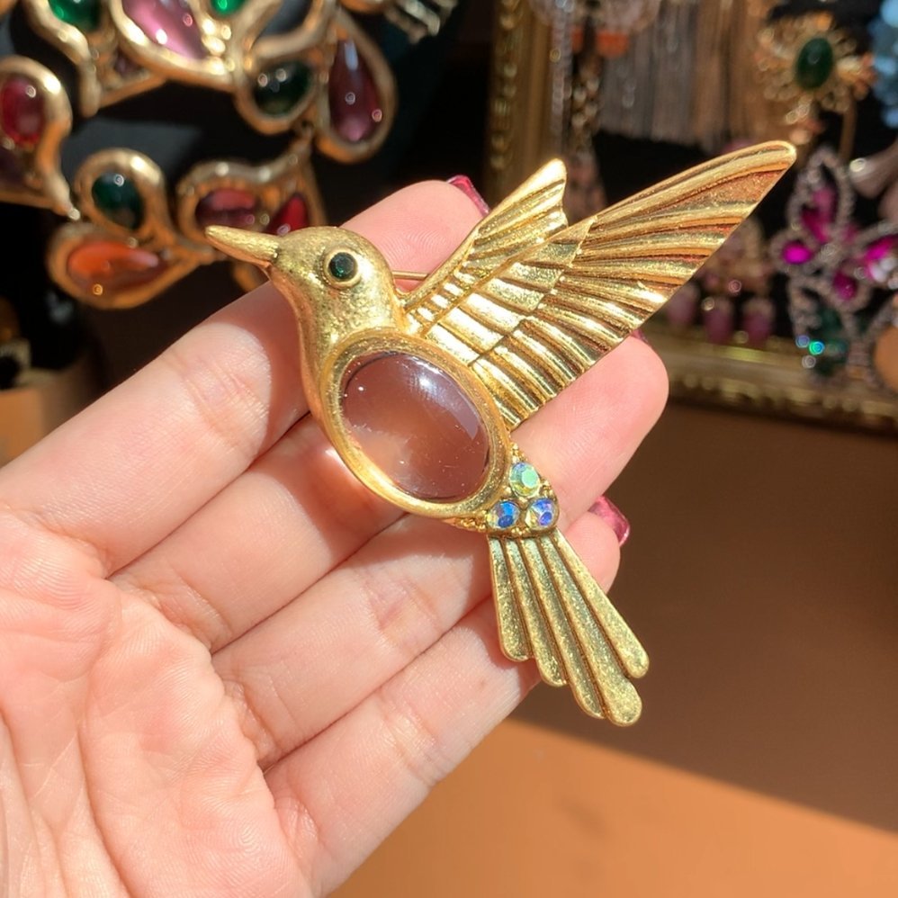 Bird Brooch Vintage Style Matte Gold Color Jelly Belly Brooch