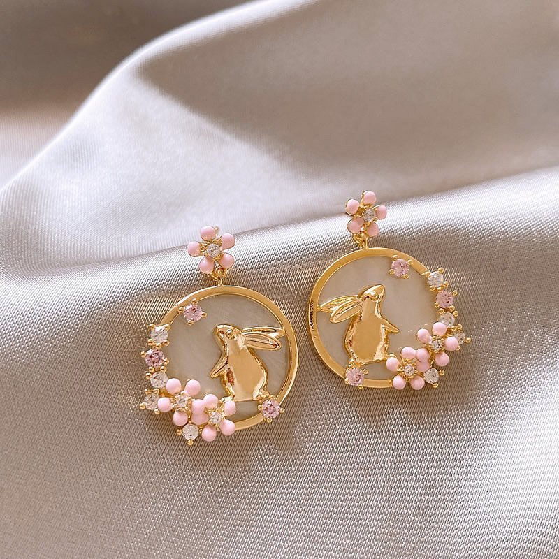 Cute Rabbit Round Dangle Flower Earrings