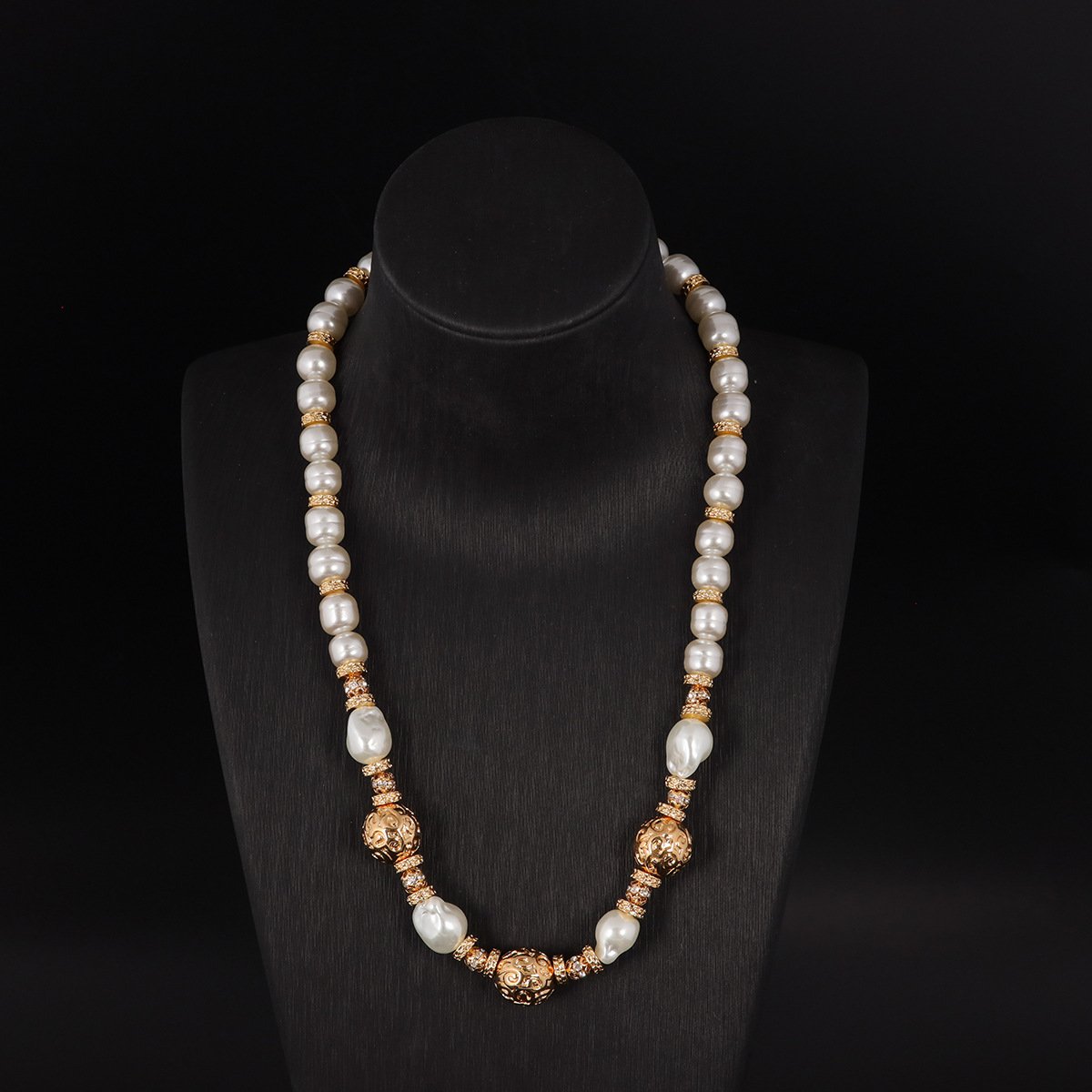Natural Agate Pearl Beaded Gold-Plated Necklace