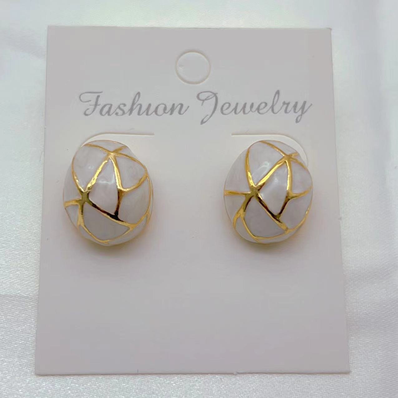 Drip Oil Irregular Gold Texture White Earrings quantity