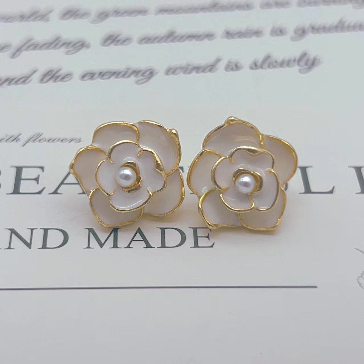 Dropping Glaze Camellia Imitation Pearl Summer Earrings