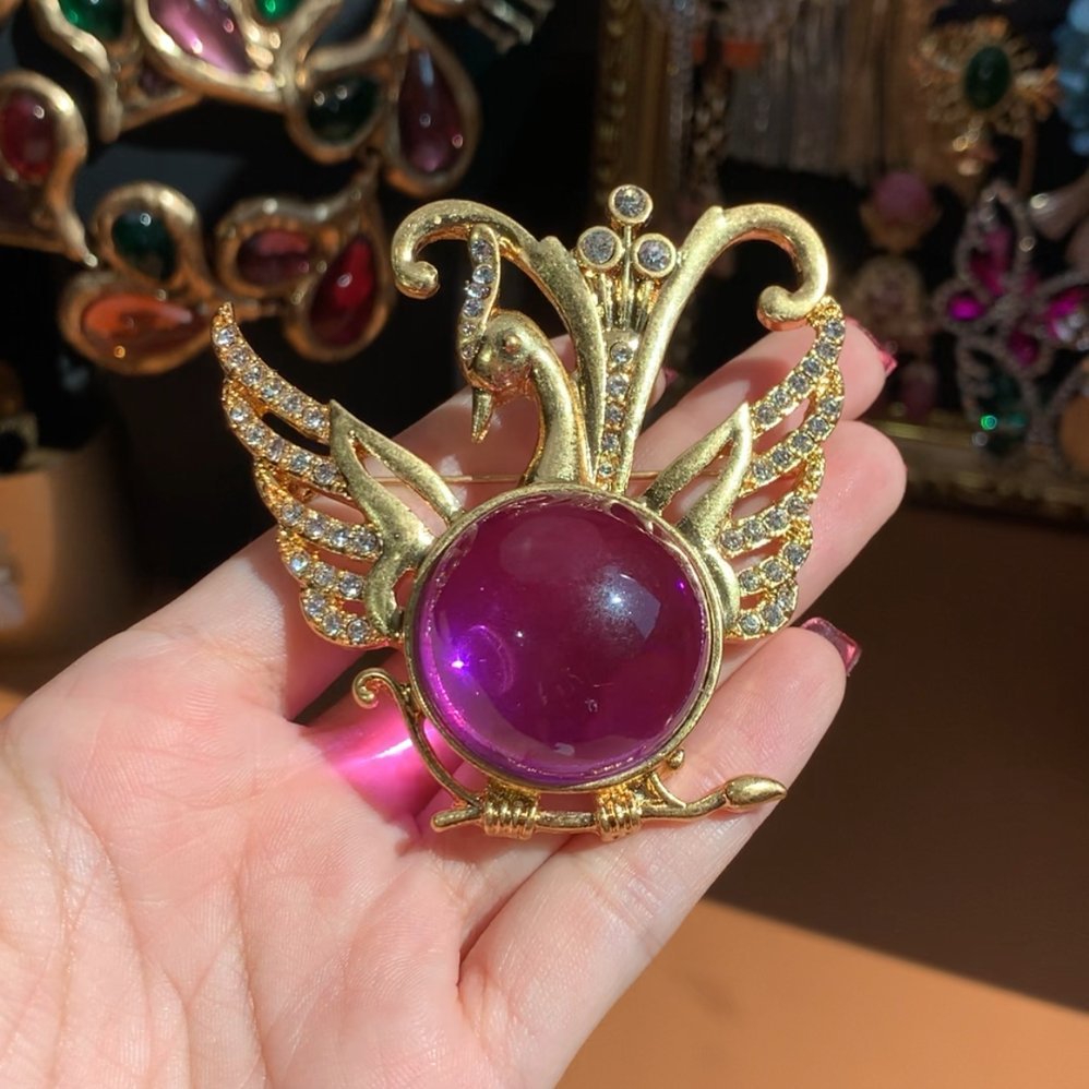 Be the first to review “Elegant Clear Purple Jelly Belly Swan Brooch”