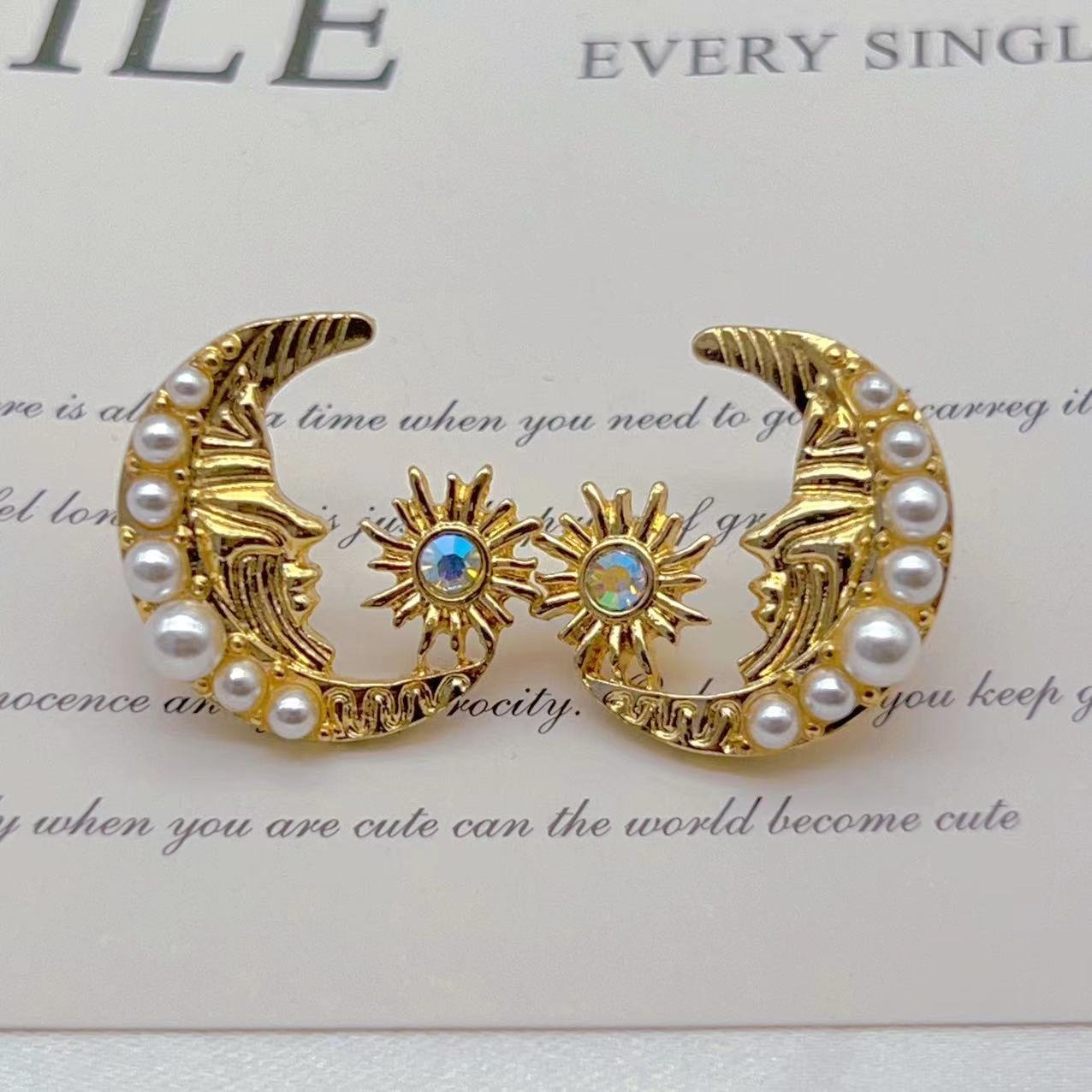 Embracing The Sun Moon Diamond Imitation Pearl Earrings quantity