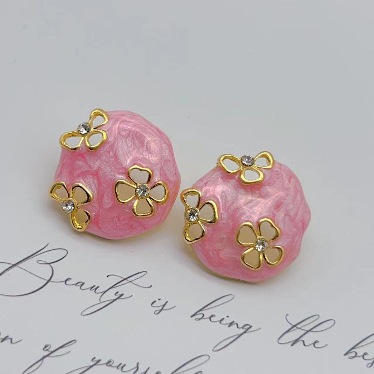 Enamel Earrings Irregular Hollow Flower Drip Glaze