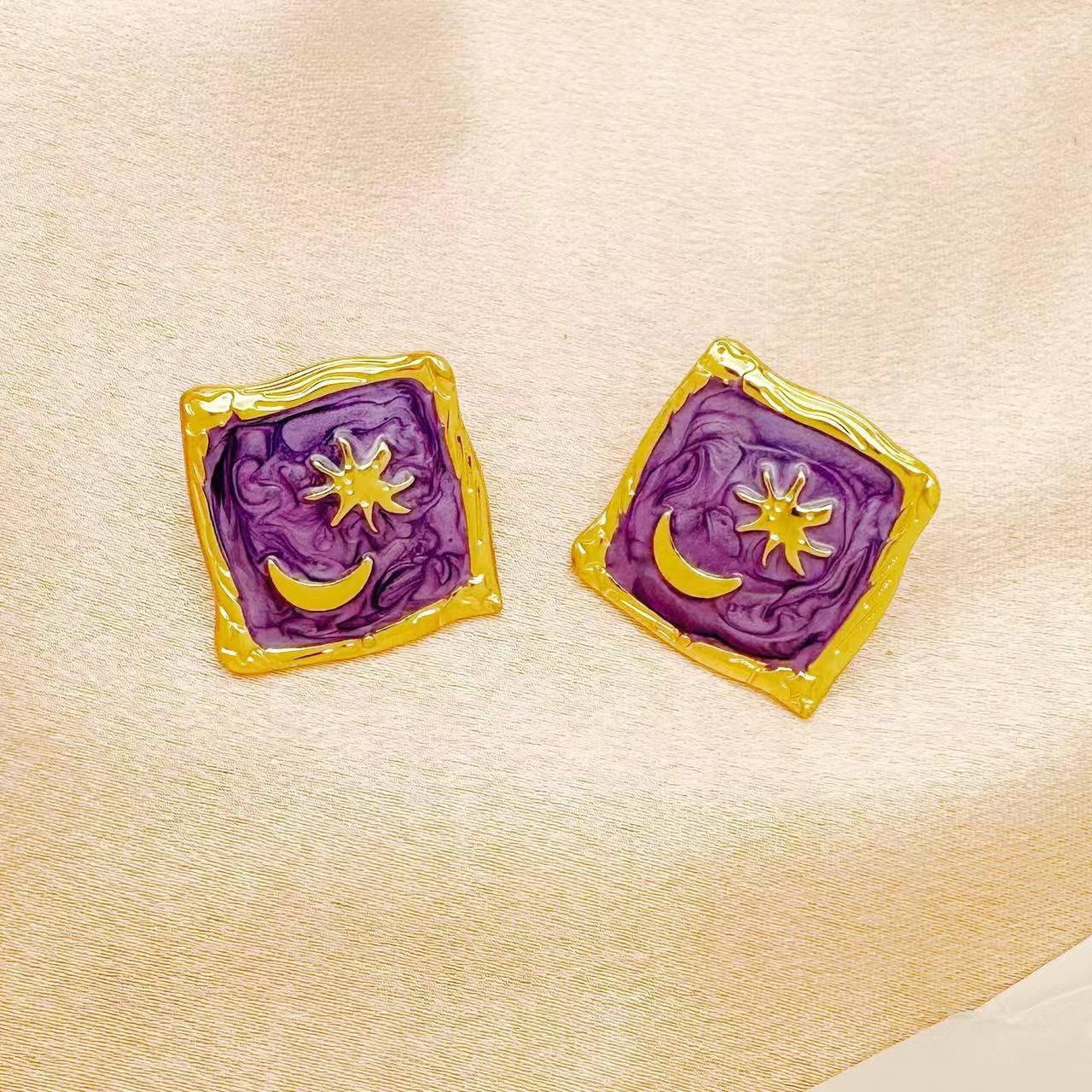 Enamel Geometric Earrings Moon Star Pattern Vintage quantity