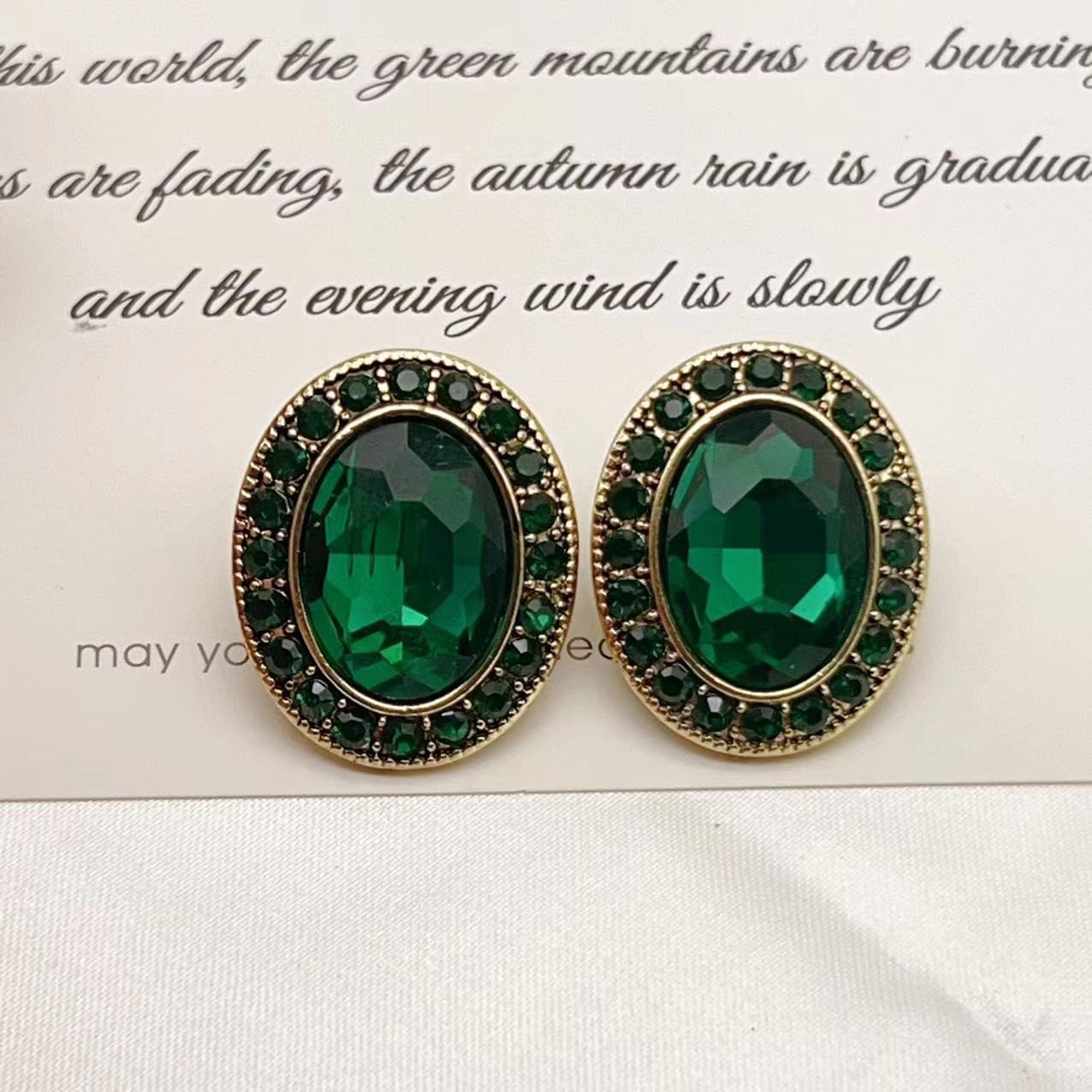 Geometric Oval Emerald Vintage Earrings