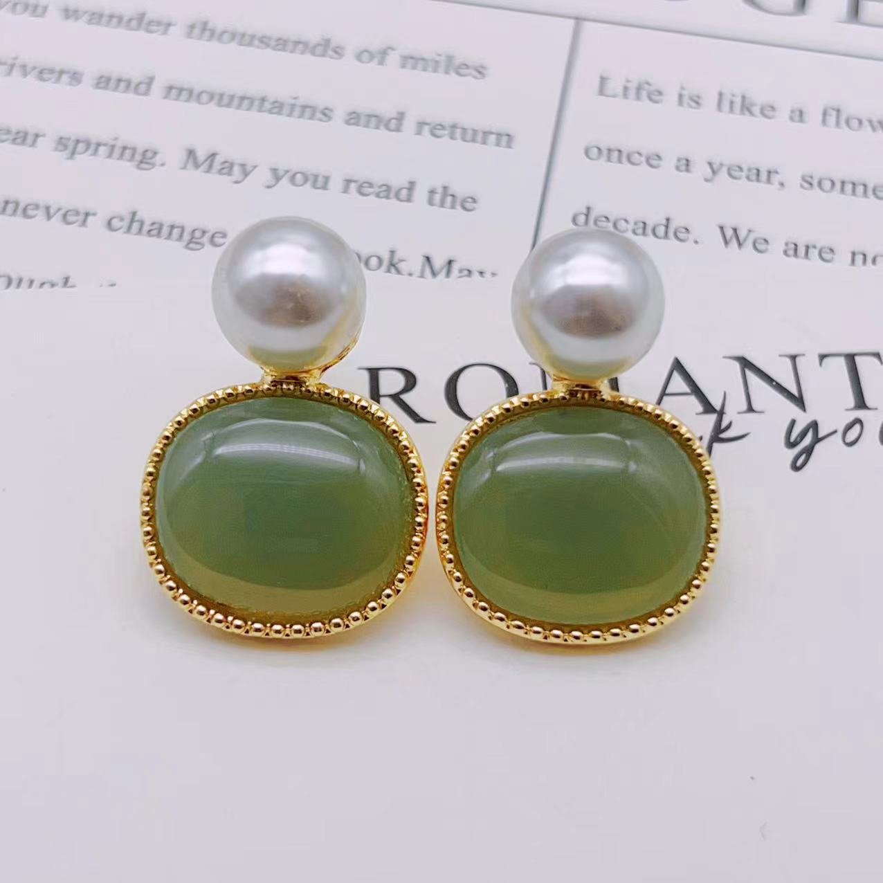 Imitation Pearl Gemstone Vintage Imitation Jade Earrings quantity