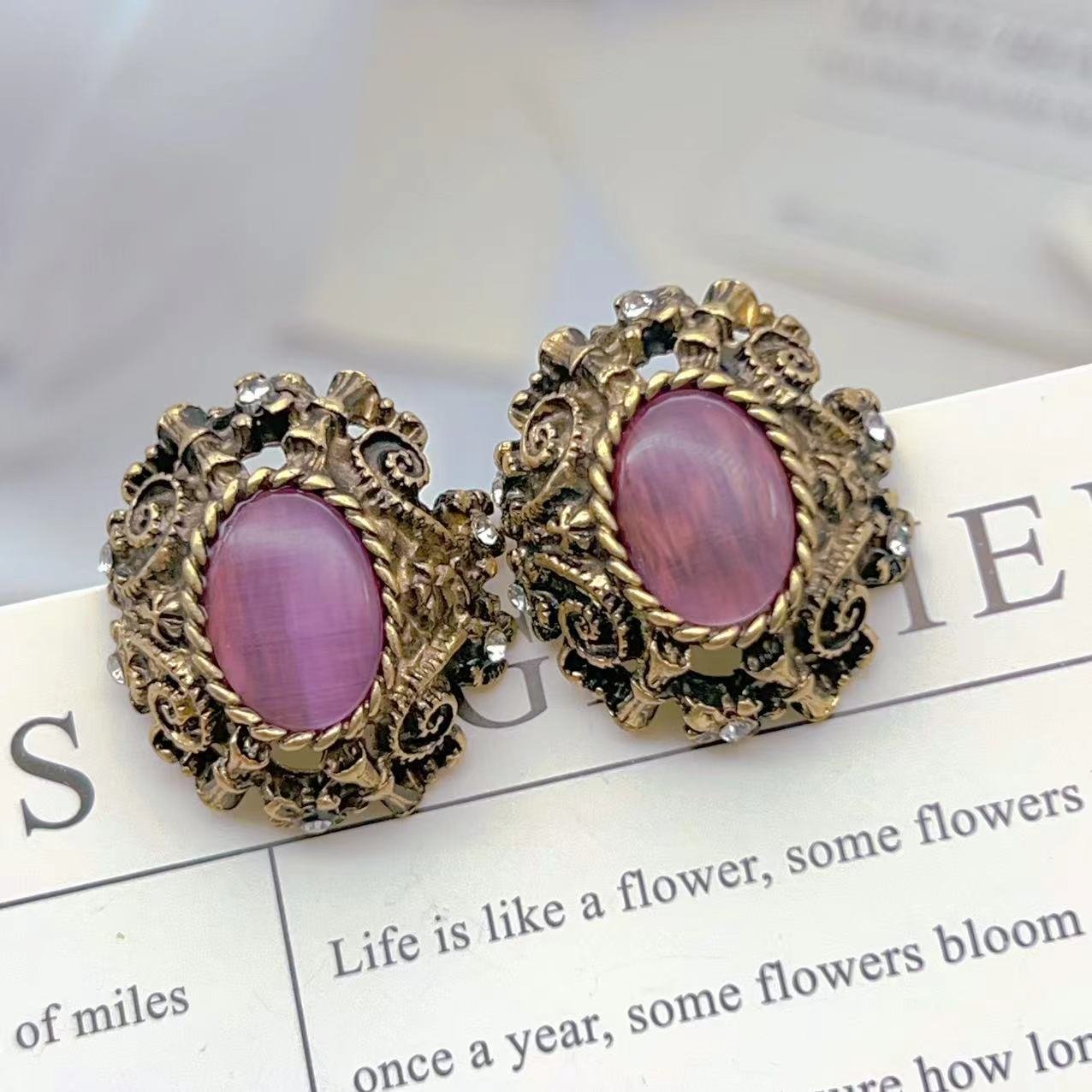 Lava Purple Cat’S Eye Three-Dimensional Vintage Earrings