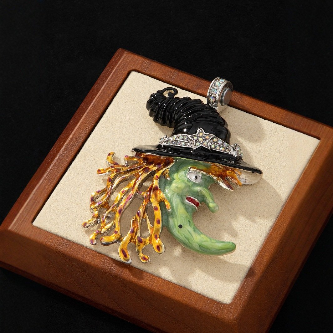 Magic Witch Pendant Enamel Diamond Magnet Pendant Moon Black Hat Green Face Witch Pendant