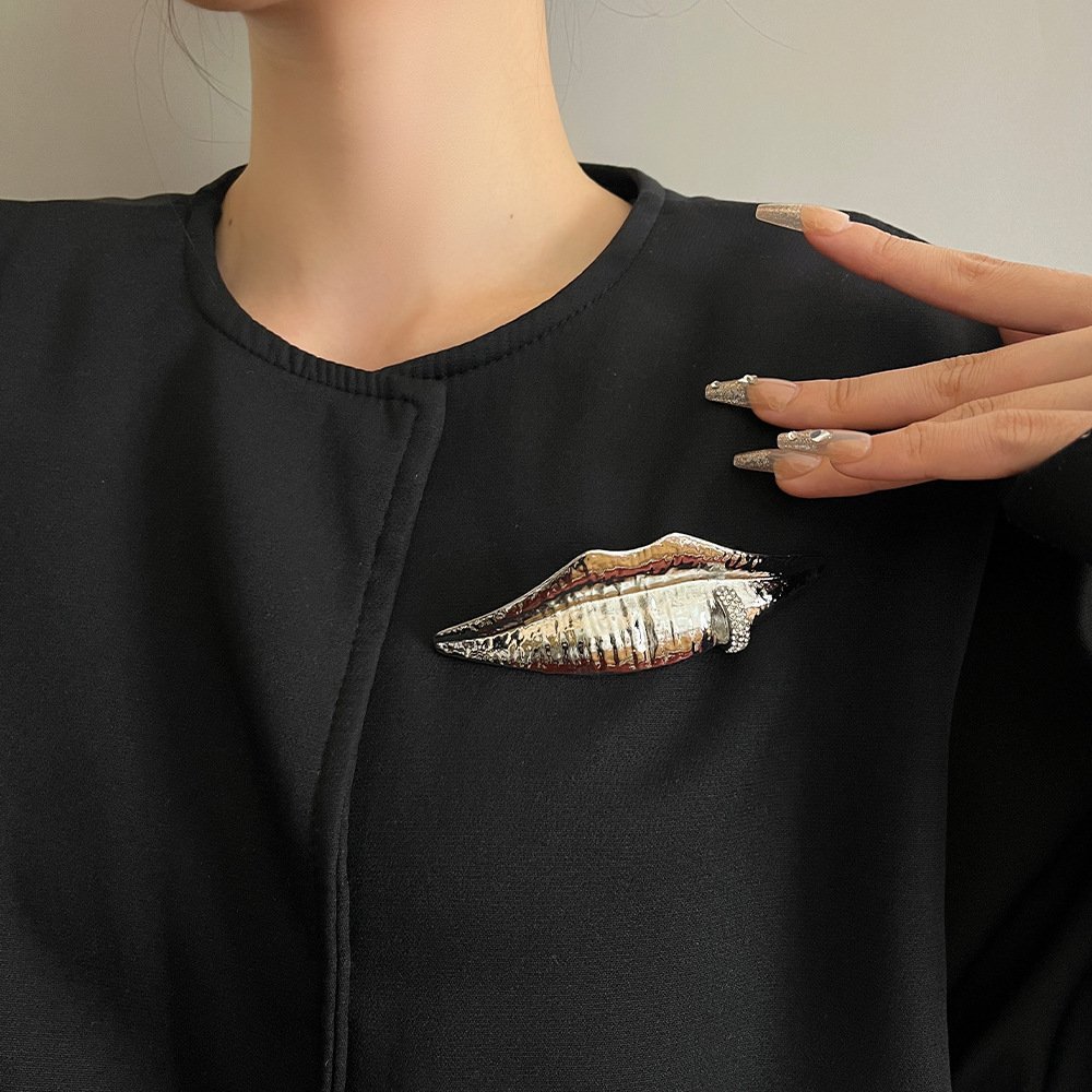 Maximelism Style Alloy Big Lip Brooch Gold / Silver Color