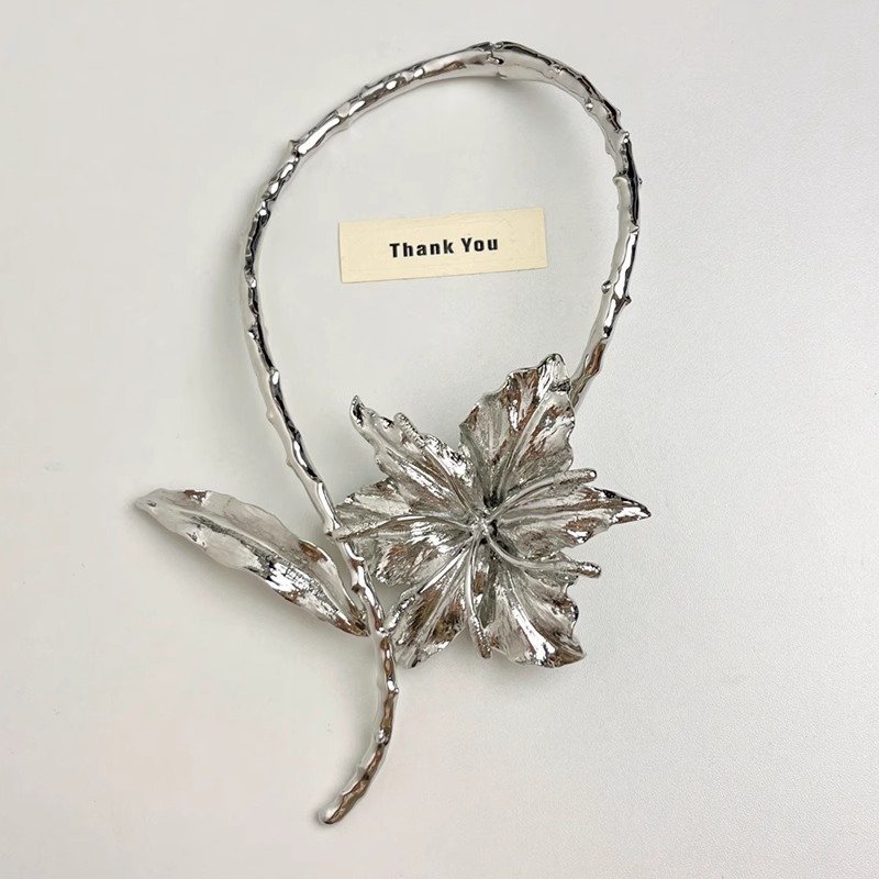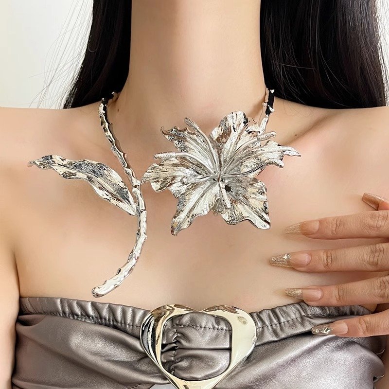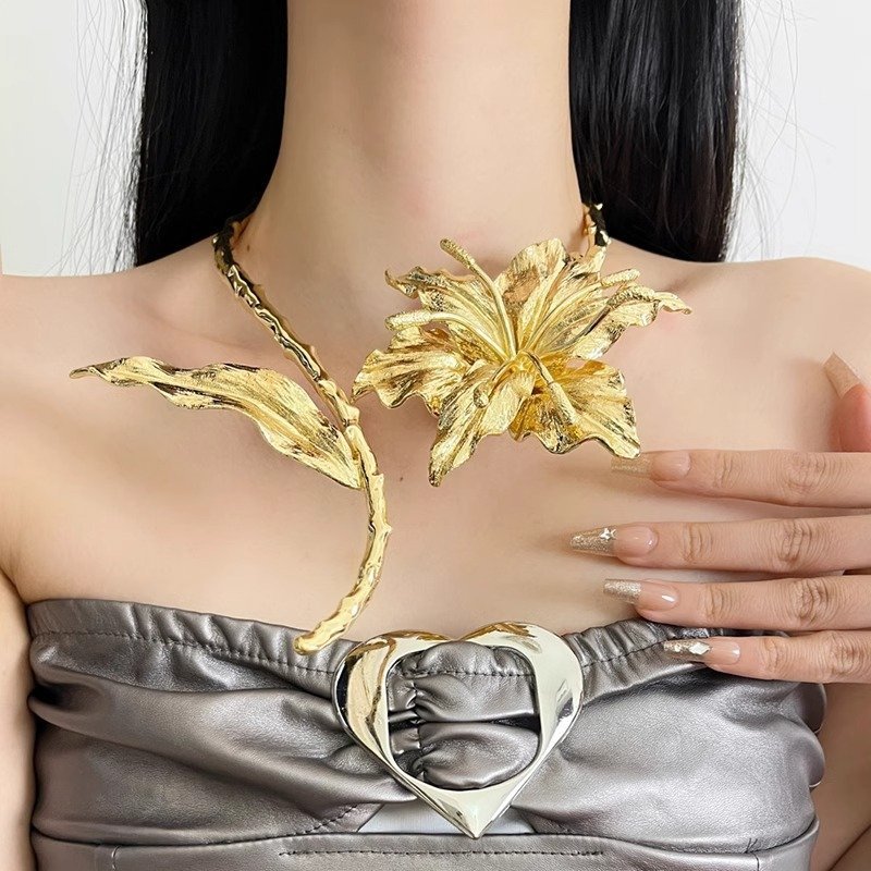 Maximelism Style BigFlower Pendant Choker Alloy Short Necklace Gold / Silver Color