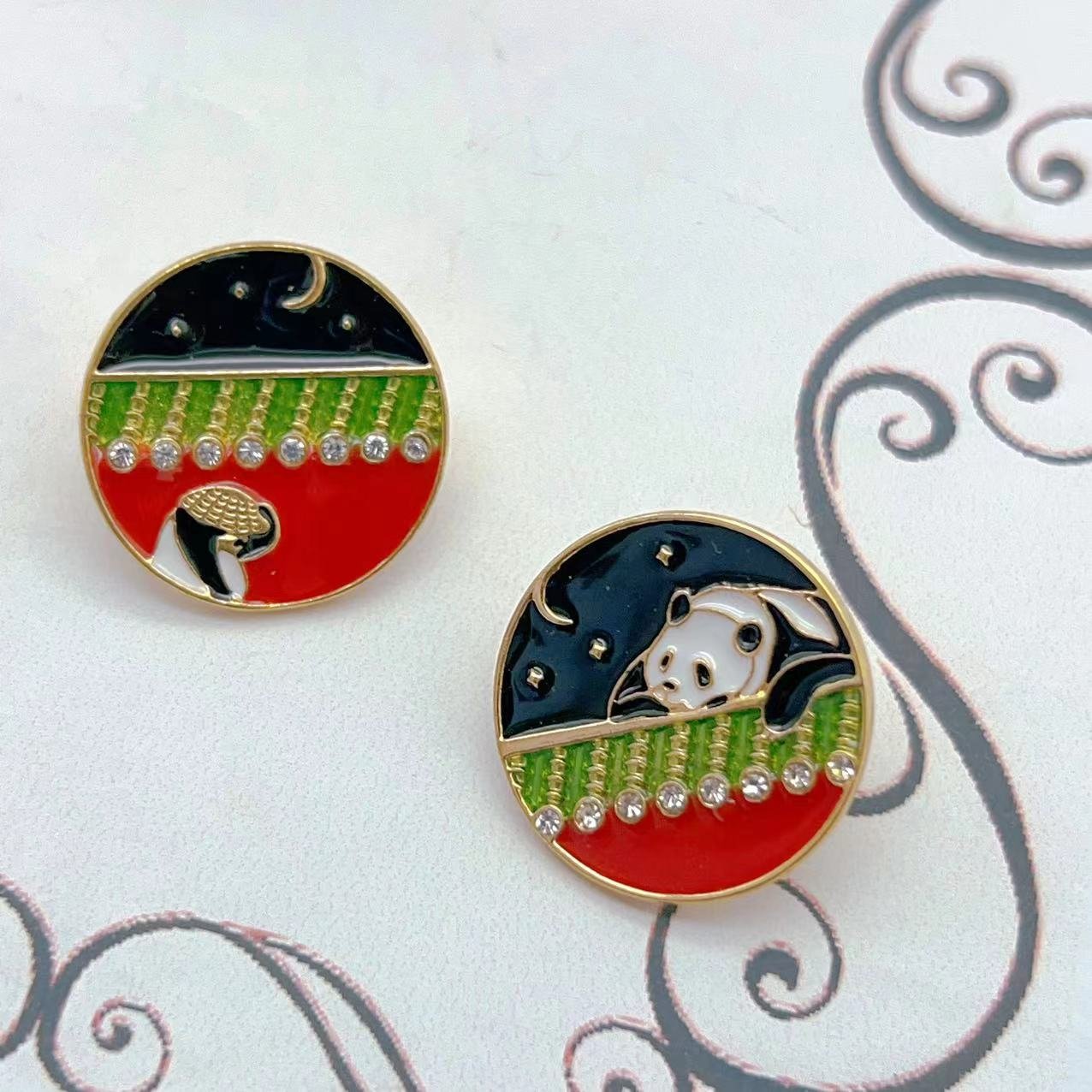 Palace Wall Panda Asymmetrical Drip Glaze Enamel Earrings