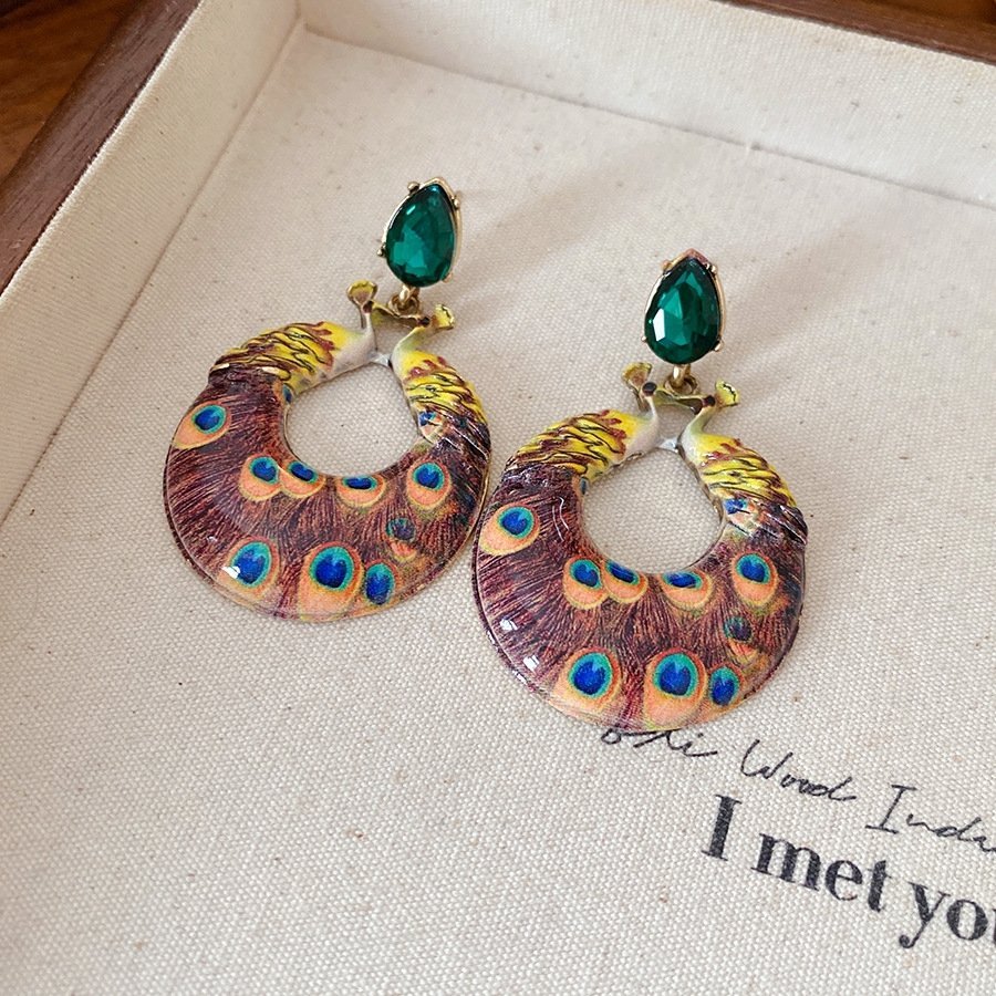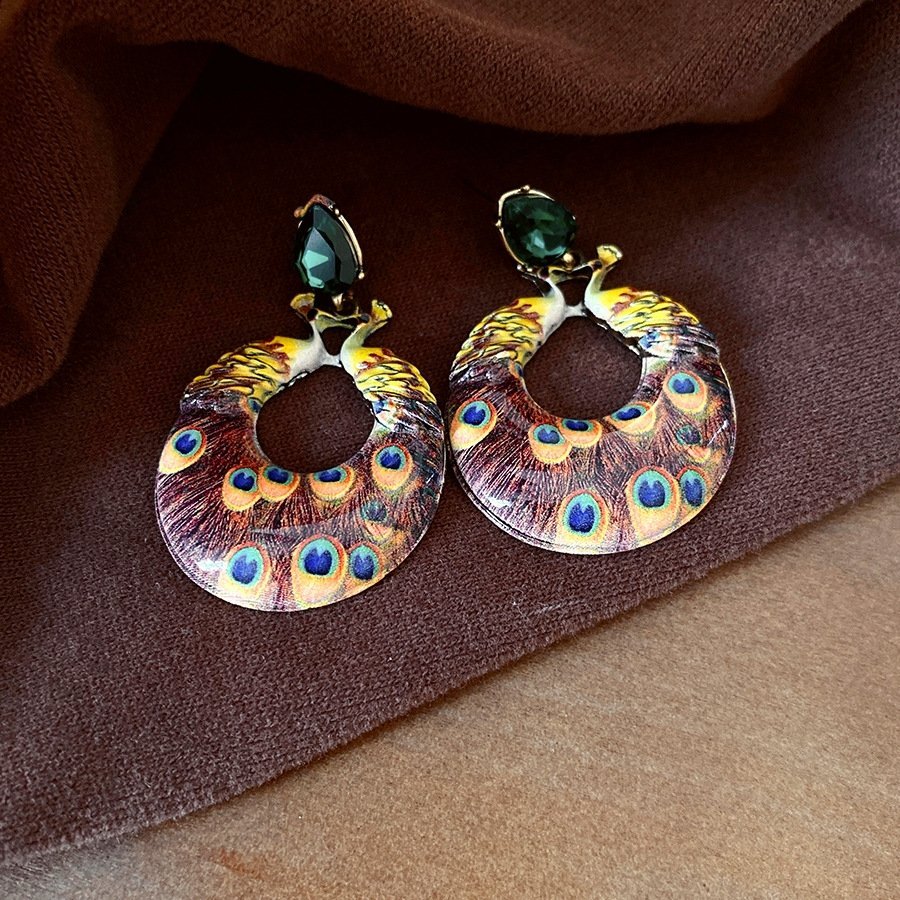 Peacock Pattern Colorful Rund Dangle Animal Earrings