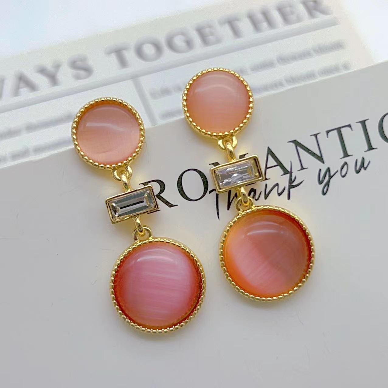 Pink Round Gradient Cat'S Eye Inlaid Earrings quantity