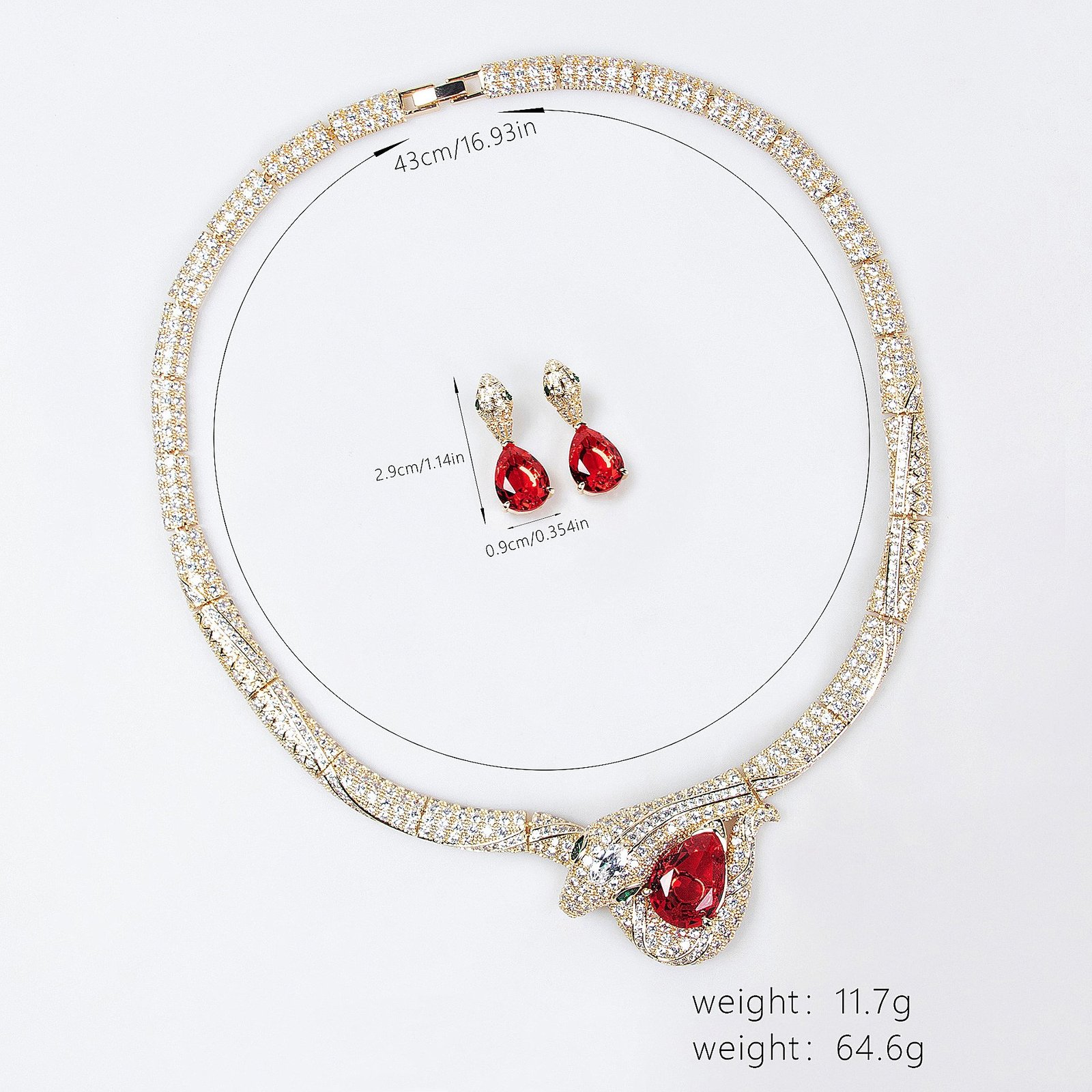 • Size: Necklace: 43cm / 16.93 in Earrings: 2.9*0.9cm/1.14*0.354 in