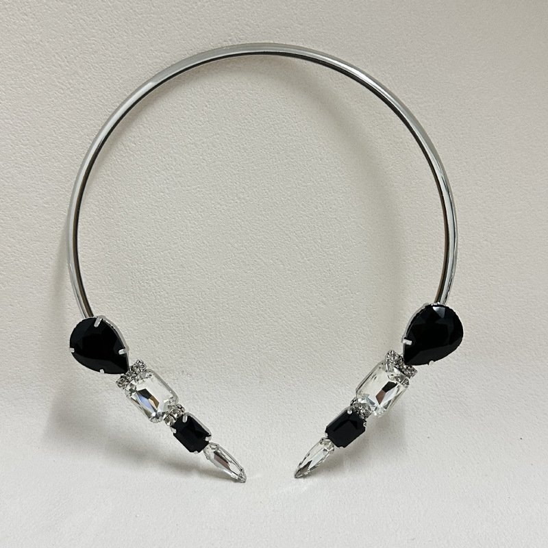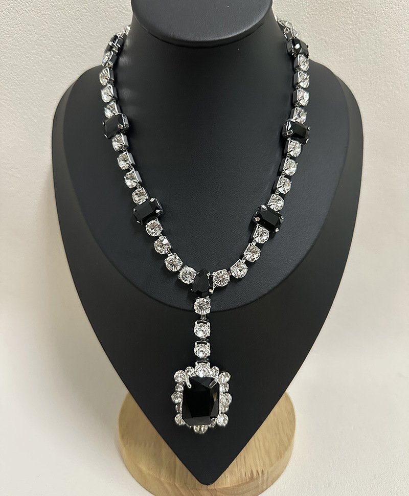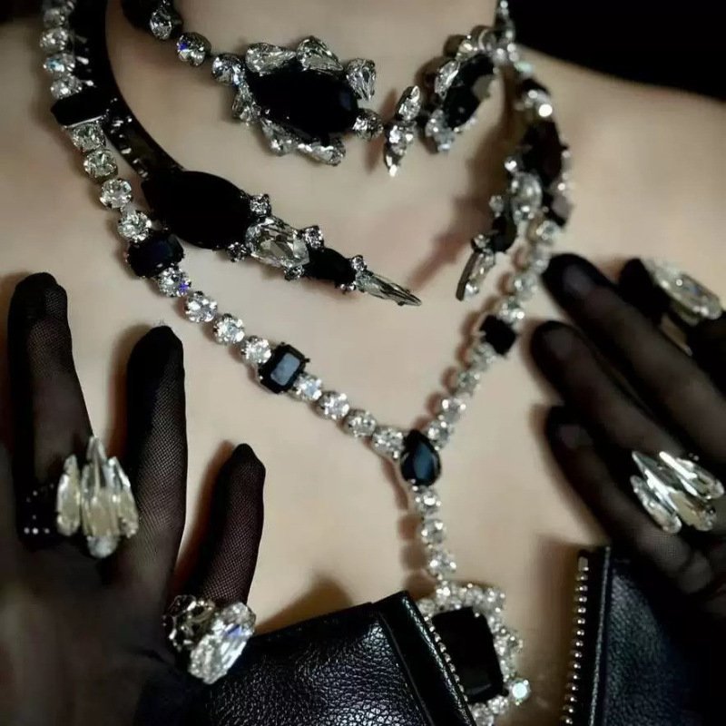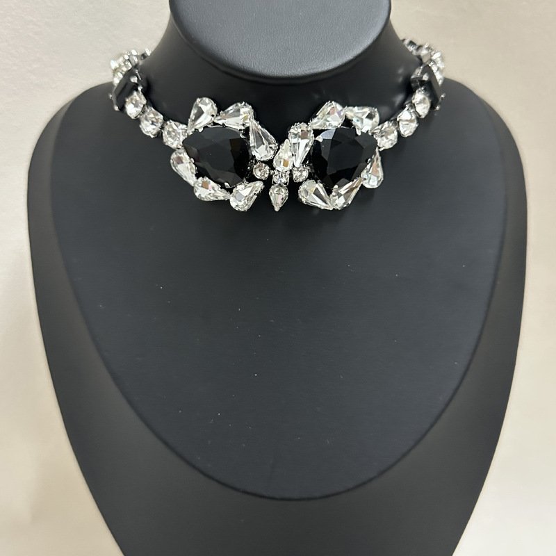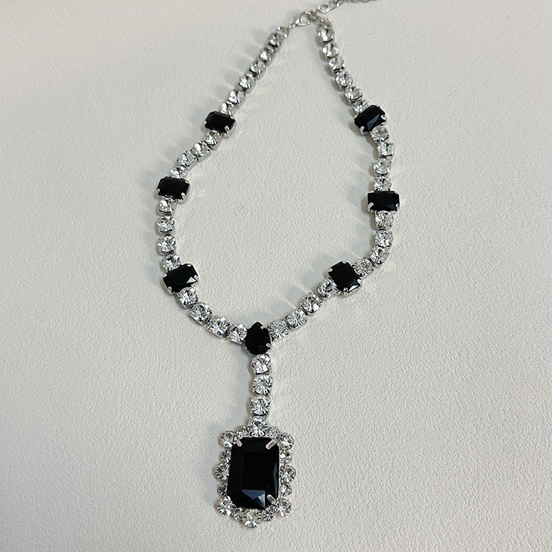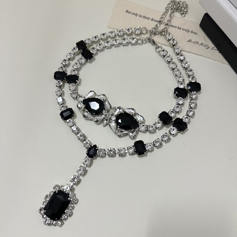 Statement Piece Choker Y Shape Necklace Stack Three Layer Black Rhinestone Inlaid Elegant Jewelry Set Lightweight