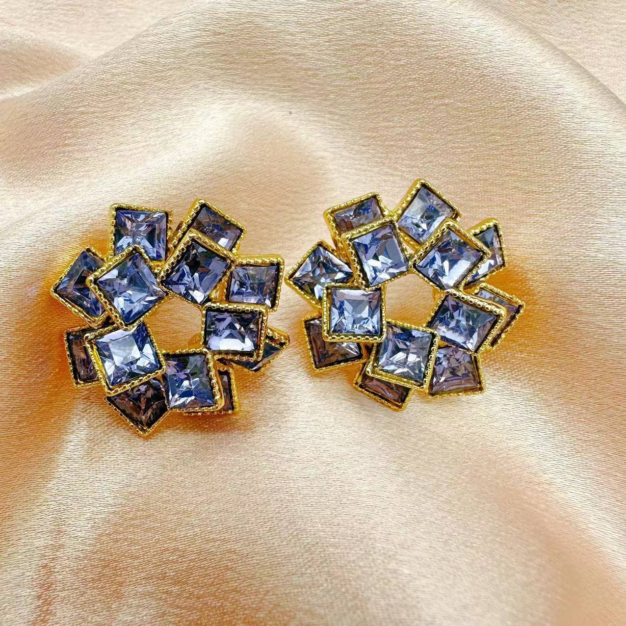 Three-Dimensional Diamond Square Flower-Feeling Earrings