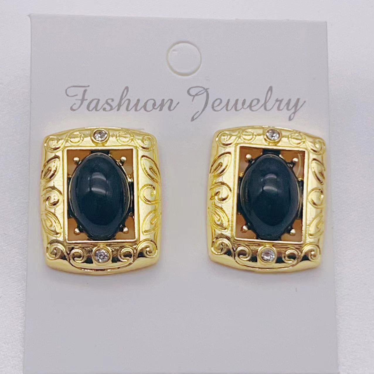 V Intage Square Geometric Black Glass Texture Earrings quantity