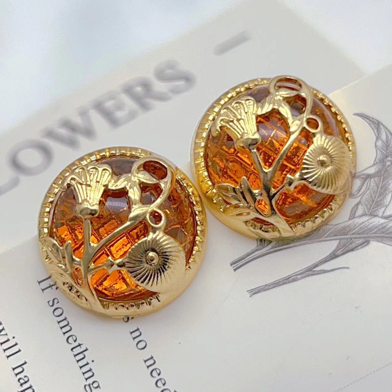 Vin Tage Hollow Carved Orange Three-Dimensional Semi-Circular Glass Earrings quantity