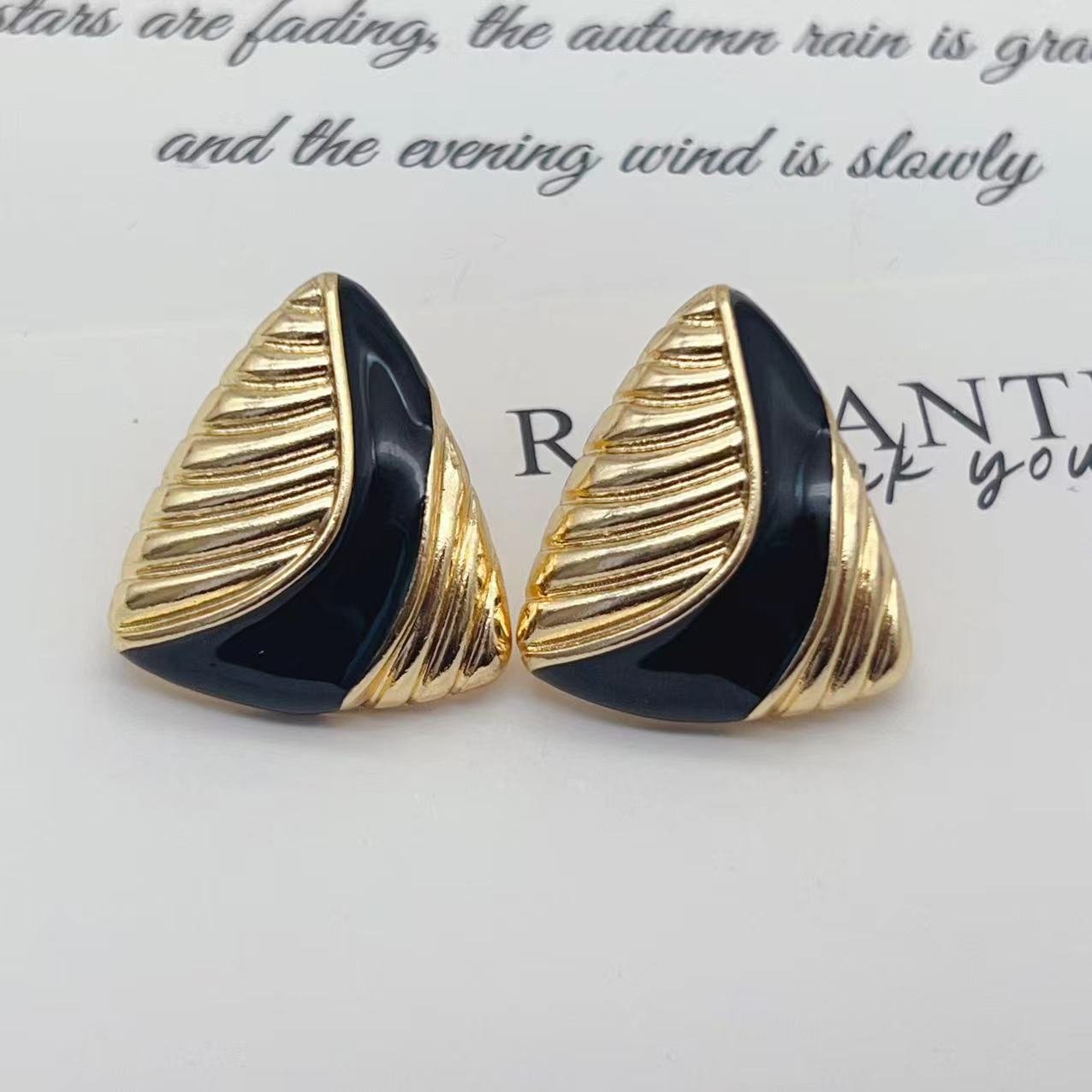 Vintage Black Drip Glaze Triangle Texture Elegant Earrings