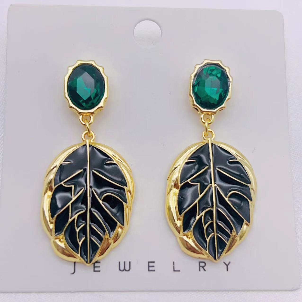 Vintage Black Enamel Emerald Inlaid Earrings quantity