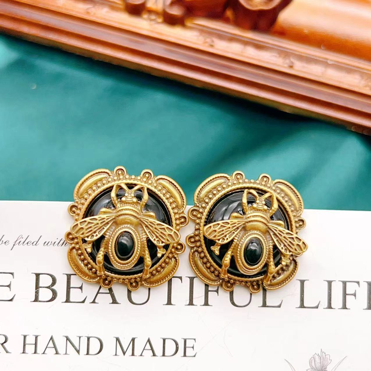 Vintage Black Insect Three-Dimensional Bee Earrings quantity