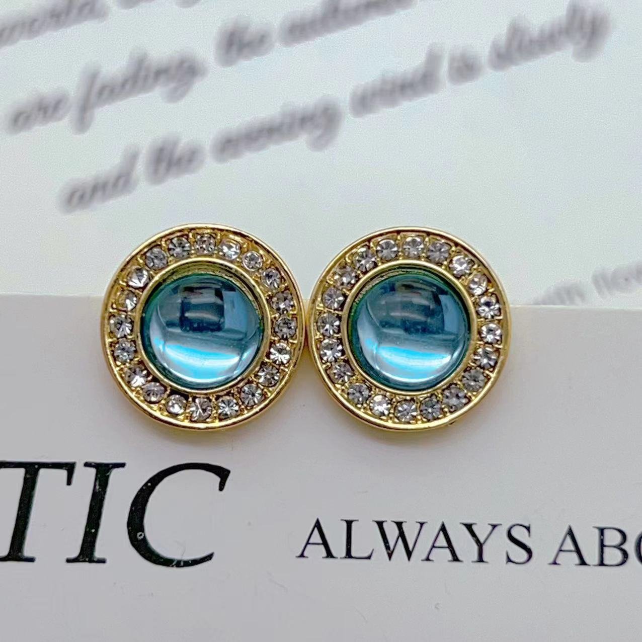Vintage Blue Diamond Glass Round Earrings