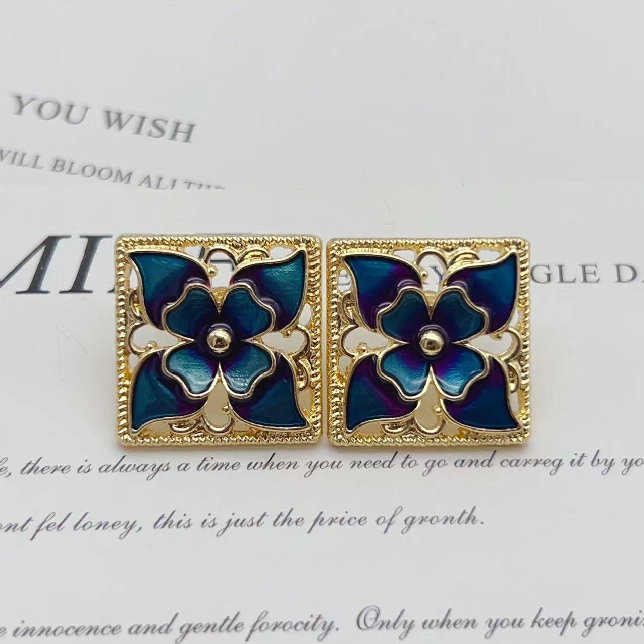 Vintage Blue Drip Glaze Four-Leaf Flower Earrings quantity
