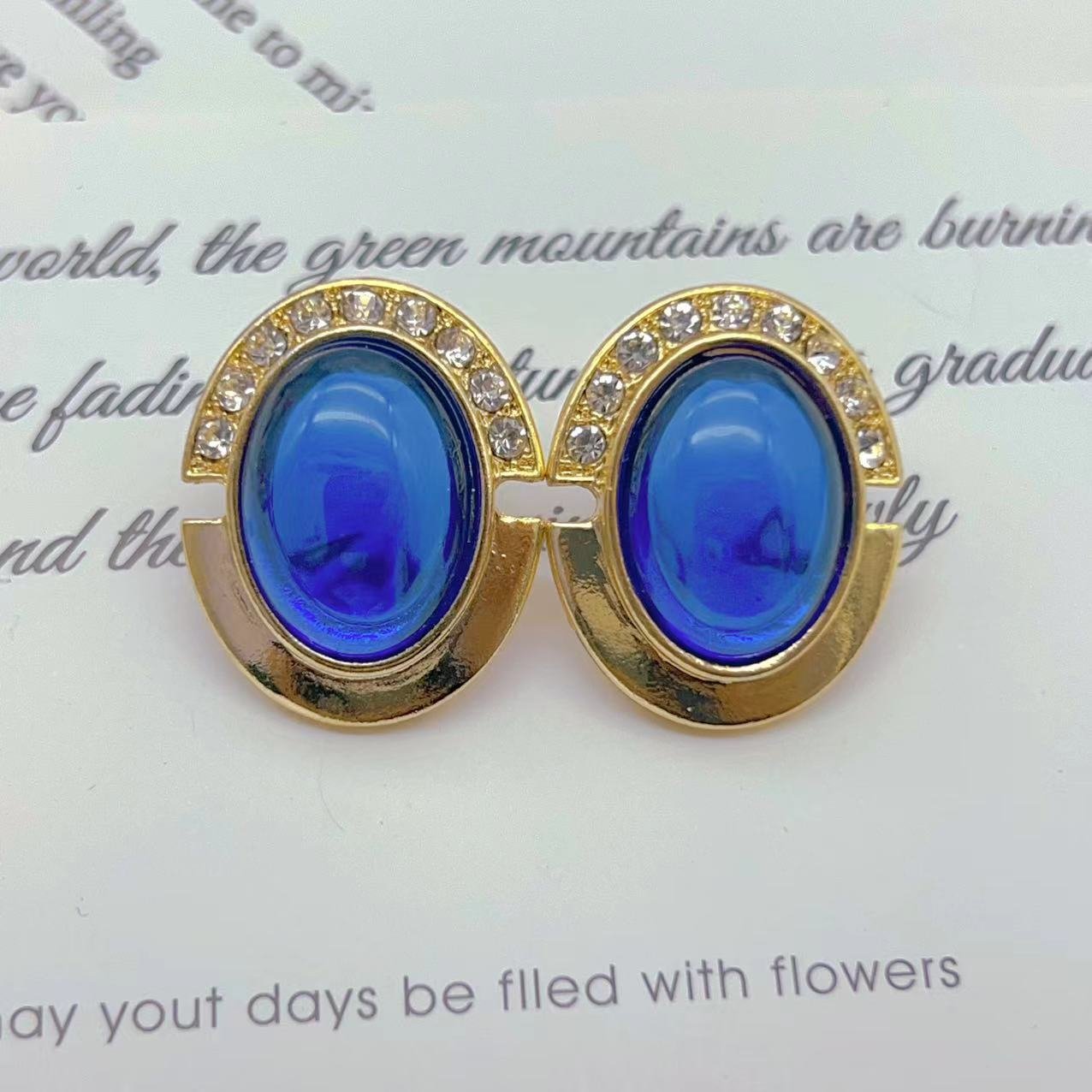 Vintage Blue Oval Resin Earrings quantity