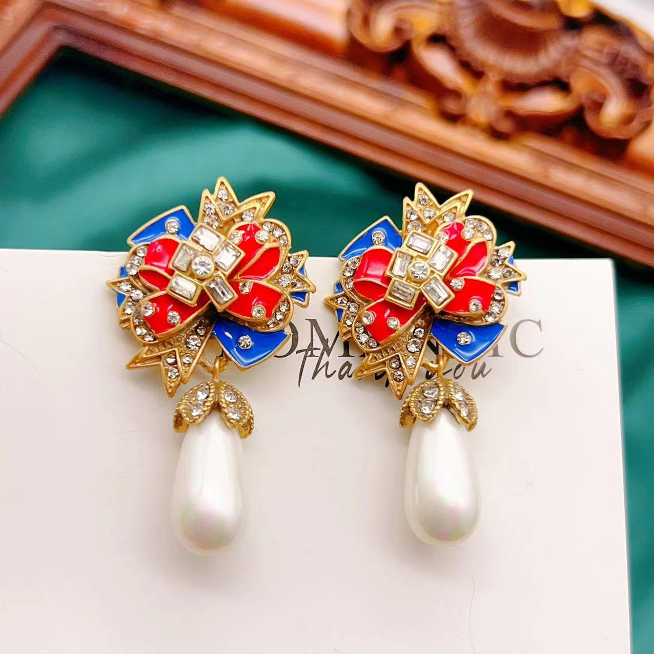 Vintage Bow Water Drop Oil Elegant Earrings quantity